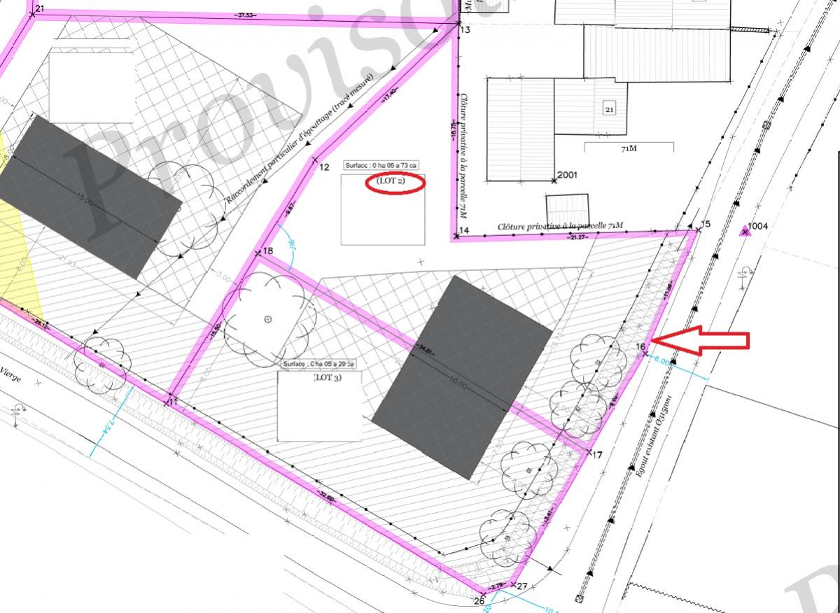Largeur du lot n°2 : +/-21m Profondeur du lot n°2 : +/-34m Orientation arrière : ouest