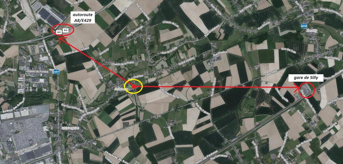 Gare de Silly à +/-4.5km (train direct vers Bruxelles en +/-30min) Autoroute A8/E429 à +/-2.8km (Bruxelles, Tournai, Lille)