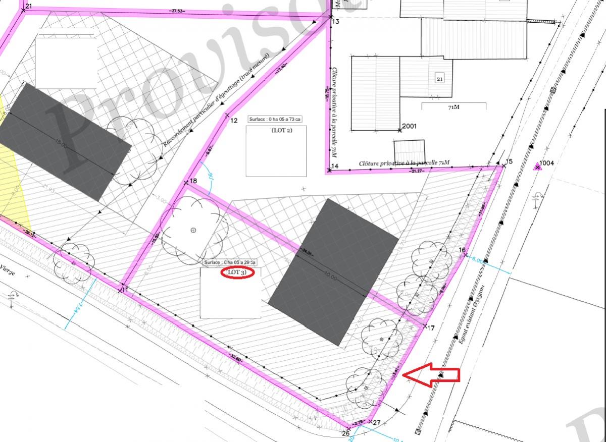 Largeur du lot n°3 : +/-16m Profondeur du lot n°3 : +/-34m
