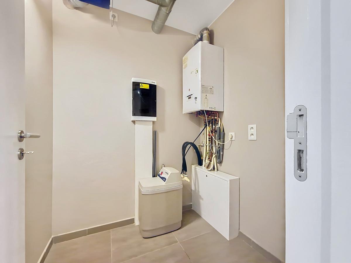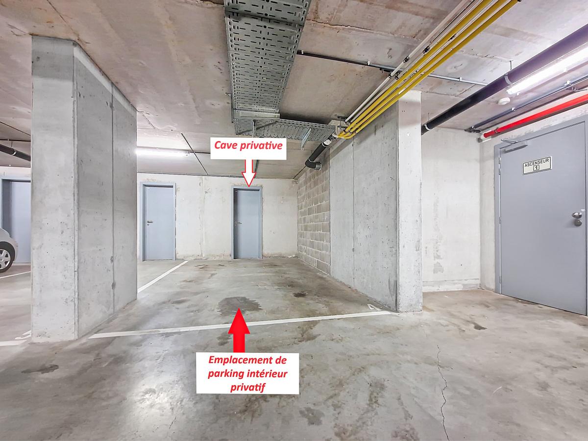 Terrasse de +/-5.7m² Cave privative de +/-6.8m² Emplacement de parking intérieur privatif