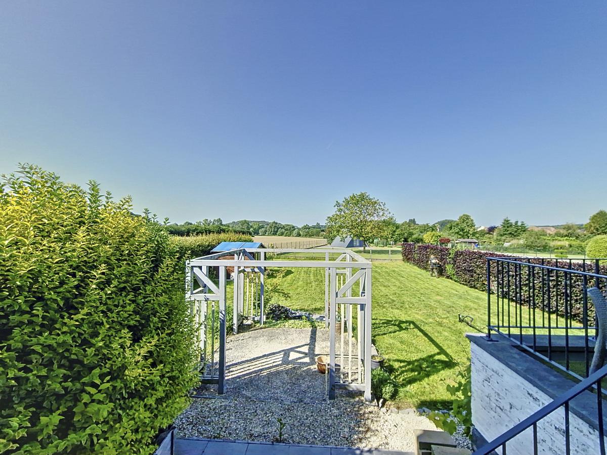 Jardin accessible : -via la cuisine (en passant par la petite terrasse en hauteur et son escalier) -via le sous-sol -via les passages latéraux (à gauche et à droite de la maison)