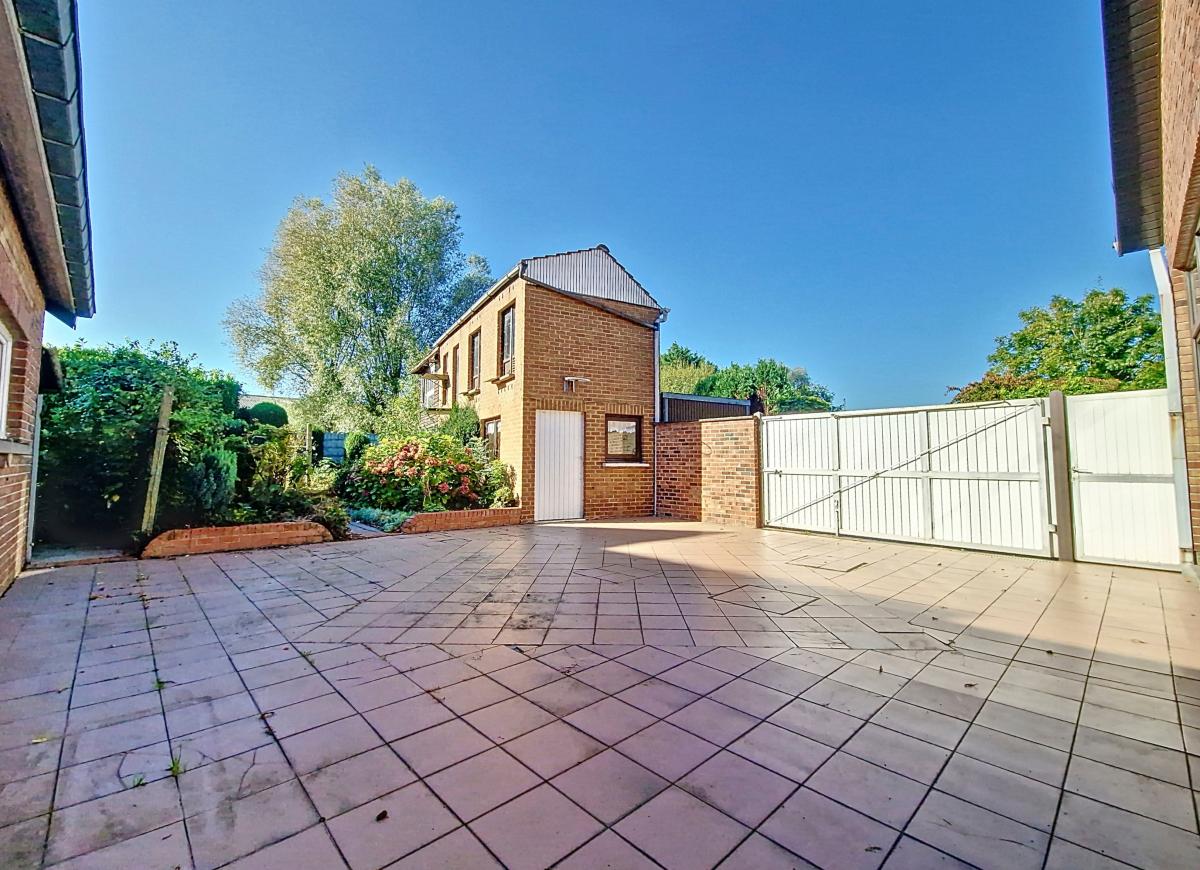 Située à Lessines, non loin des commodités, cette spacieuse demeure ravira les familles à la recherche d’espaces et de luminosité, ainsi que les entrepreneurs à la recherche de volumes de stockage et d’atelier/garage. Érigée sur une parcelle de 8a75, cette habitation propose, en son rez-de-chaussée, un hall d’entrée, une toilette, un séjour agrémenté d’un poêle (bois/charbon), une cuisine, une petite véranda de +/-5.2m², 2 chambres (de +/-11.5 et 15m²), et une salle de douche avec WC, offrant donc à ses occupants la possibilité de vivre de plain-pied. Le 1er étage est doté d’un hall de nuit, de 2 chambres (de +/-18 et 21.5m², dont l’une avec un point d’eau), et d’un spacieux grenier de +/-56.3m² potentiellement aménageable. Une cave de près de 30m², deux garages (de +/-17.2 et 32.4m²) ainsi qu’un ancien grand pigeonnier viennent compléter ce beau programme. Enfin, une terrasse et un jardin orientés S-O permettent de profiter des doux rayons du soleil. Deux allées de part et d’autre de la maison offrent des espaces de stationnement non négligeables. Prix : faire offre à partir de 240 000 euros sous réserve d’acceptation des vendeurs. Gare de Lessines à +/-1.3km, autoroute E429 à +/-6.6km (Bruxelles-Tournai-Lille), et nombreux commerces et grandes surfaces à moins de 2km.