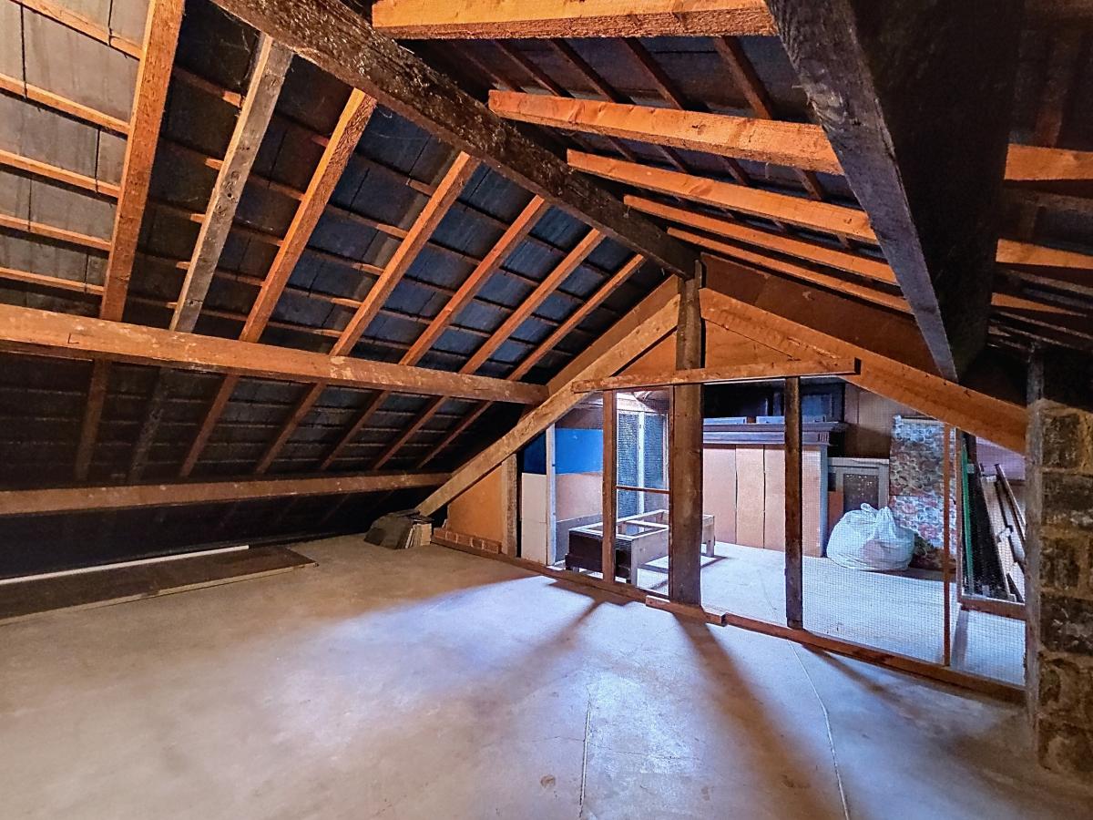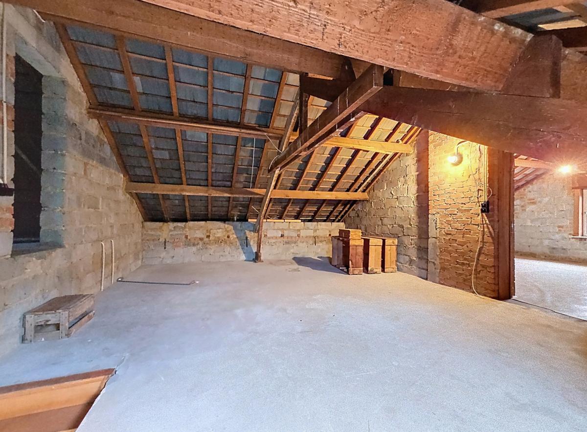 Grenier : -pièce centrale de +/-26m² -pièce secondaire de +/-37m² -partie réhaussée de +/-32m²
