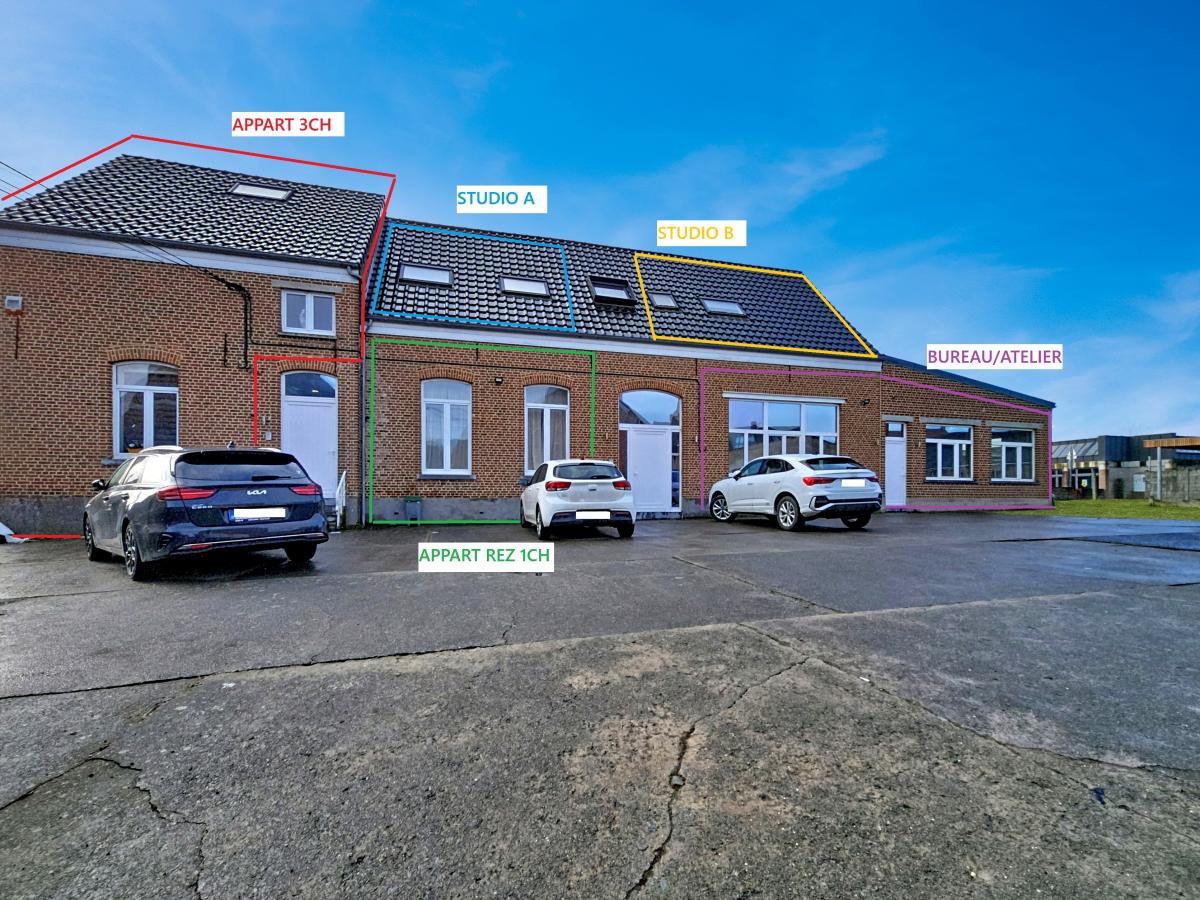 Investisseurs, investisseuses, soyez attentifs à ce qui suit ! Vous allez succomber… Situé dans le centre du village de Bassilly, à quelques minutes de la gare et de l’autoroute, cet immeuble de rapport implanté sur une parcelle de 9a10ca vous propose : un appartement rez-de-chaussée 1 chambre (de +/-35.3m²), un appartement 3 chambres (de +/-83.2m²), un studio de +/-31.4m², un 2ème studio de +/-36.5m², et une surface commerciale ou de bureau (avec kitchenette) de +/-101.4m². Les 4 logements sont actuellement loués, produisant donc des revenus immédiats, tandis que la surface commerciale ou de bureau est libre d’occupation, laissant l’opportunité au futur propriétaire d’occuper cette partie à titre professionnel, ou de la mettre en location selon ses desiderata. Un très grand parking et 2 garages viennent compléter ce beau programme. Ce bien d’investissement jouit de la proximité de nombreuses commodités : gare de Silly à +/-1.1km (train direct vers Bruxelles en +/-30min), autoroute E429 à +/-2km (Bruxelles, Tournai, Lille), école communale de Bassilly juste à côté, boulangerie à +/-750m, boucherie à +/-75m, Proxy Delhaize à +/-3.2km, pharmacie à +/-900m, magasin d'alimentation Bio et Locale en VRAC à +/-400m, Intermarché à +/-4.6km, complexe sportif Sillysports à +/-550m. Ne manquez pas cette opportunité !