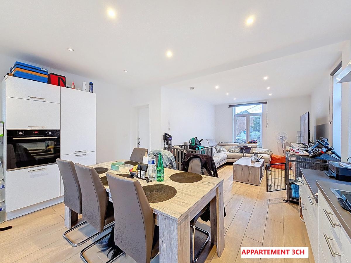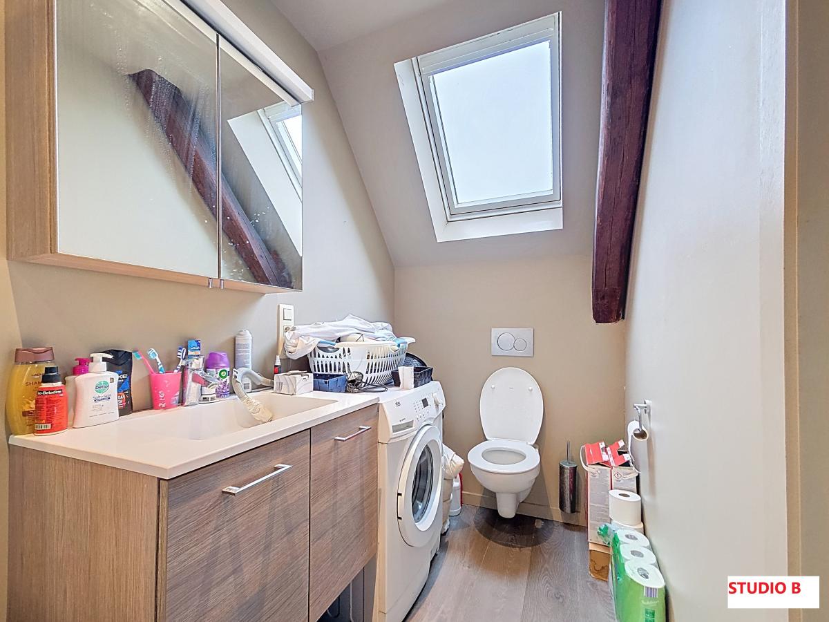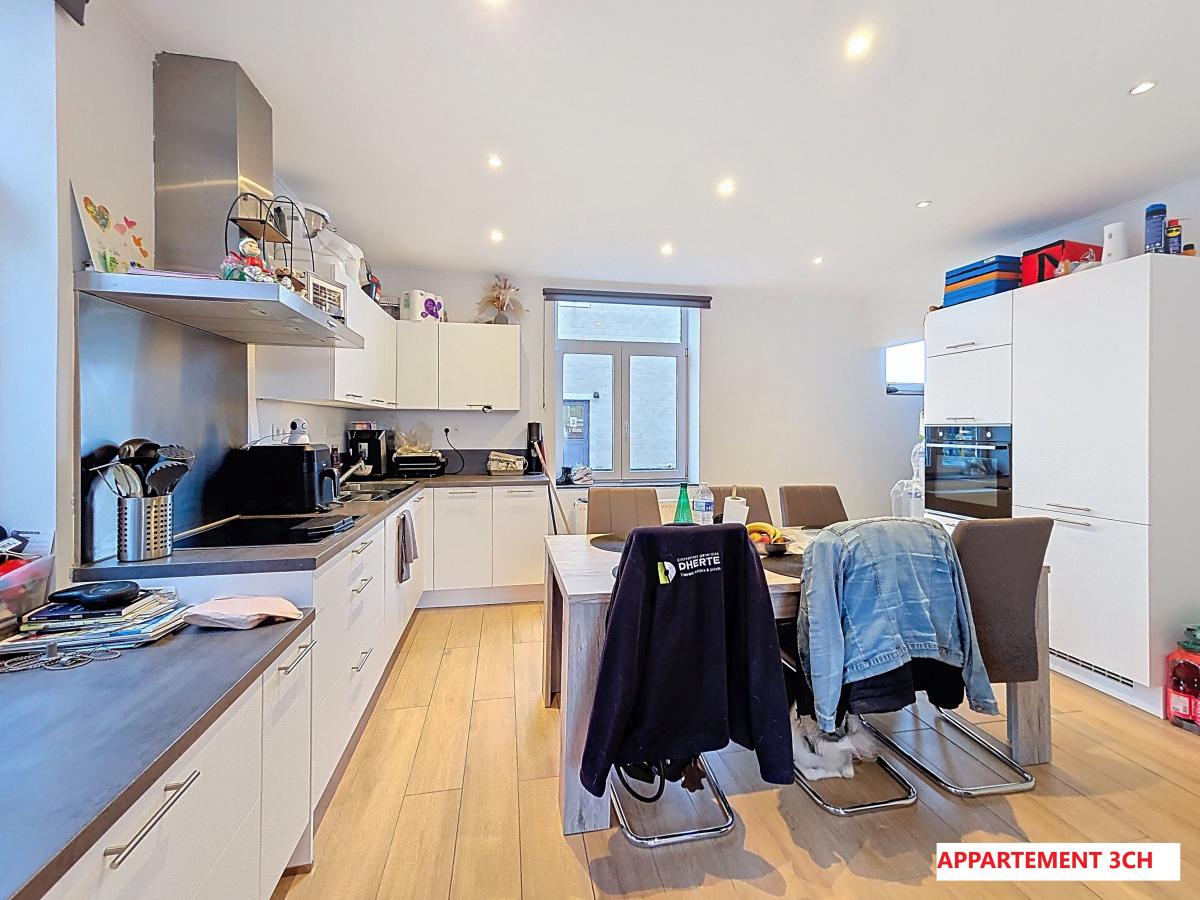 Location en cours : loyer actuel de 663 euros (compris : eau, électricité, chauffage) Certains châssis bois double vitrage haut rendement Certains châssis PVC double vitrage haut rendement Installation de chauffage central collectif, chaudière mazout non à condensation Pas de thermostat d’ambiance Installation d’eau chaude sanitaire : production avec stockage par chaudière Cuisine : taque Zanussi, hotte, évier, égouttoir, four Zanussi, lave-vaisselle Zanussi, frigo Salle de douche : douche, WC, meuble-évier, meuble suspendu avec miroir, radiateur porte-serviettes