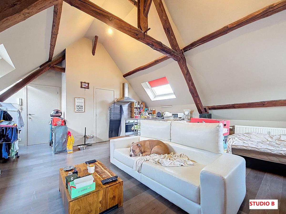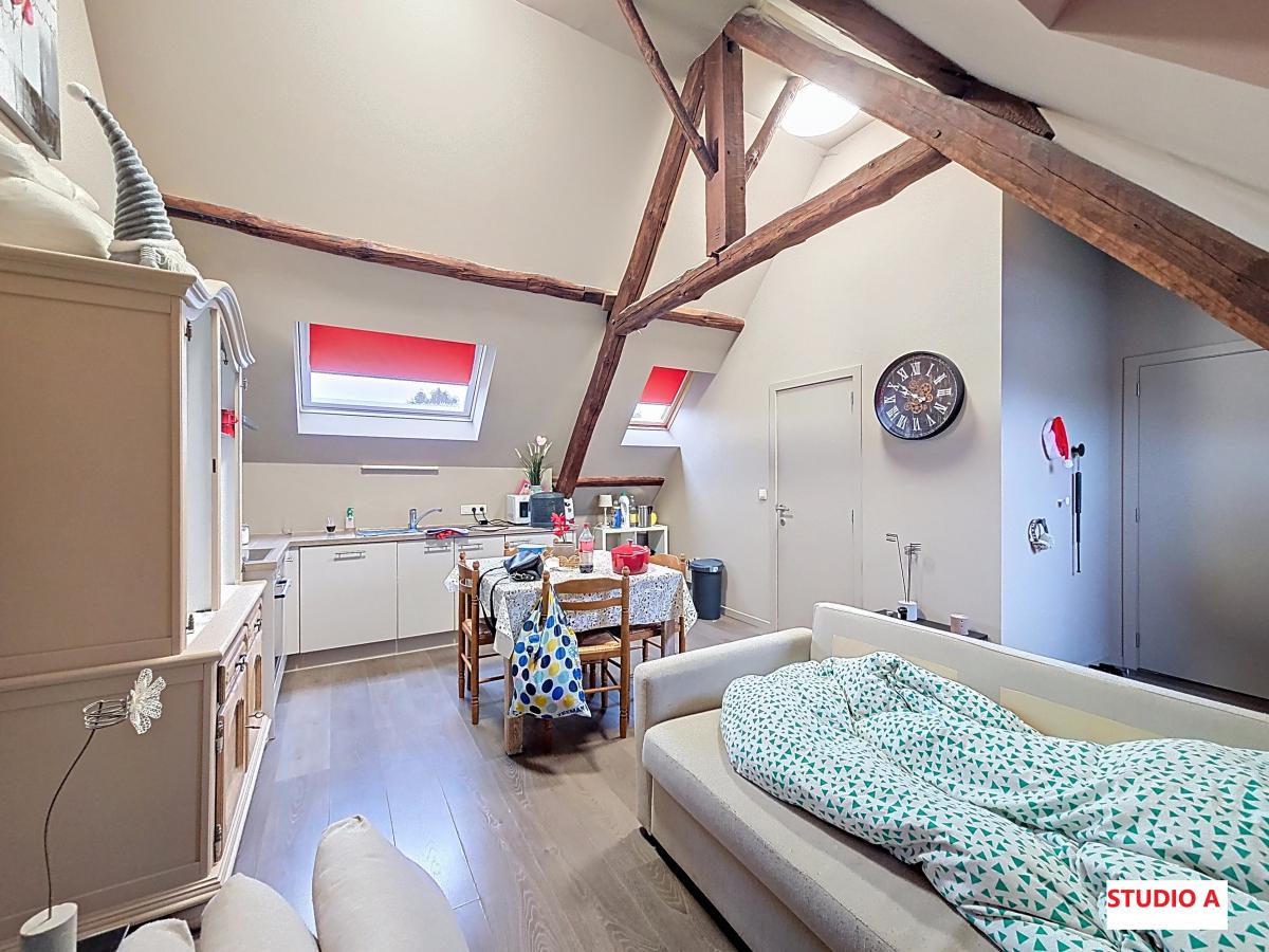 Séjour (avec cuisine ouverte) de +/-19.4m² Chambre de +/-10.2m² Salle de douche (avec WC) de +/-5.7m²