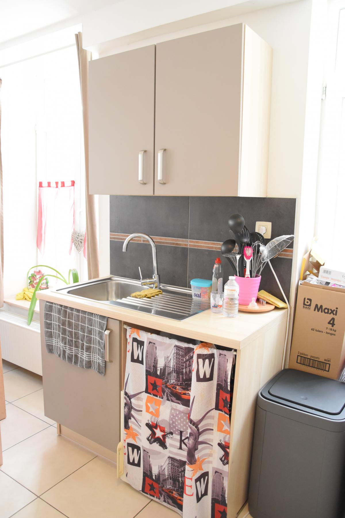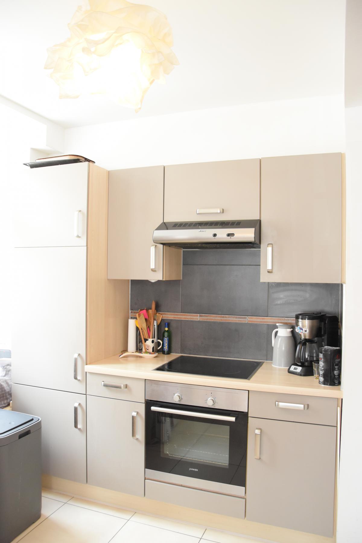 Equipements cuisine : Évier, égouttoir, taque vitro-céramique, hotte, four