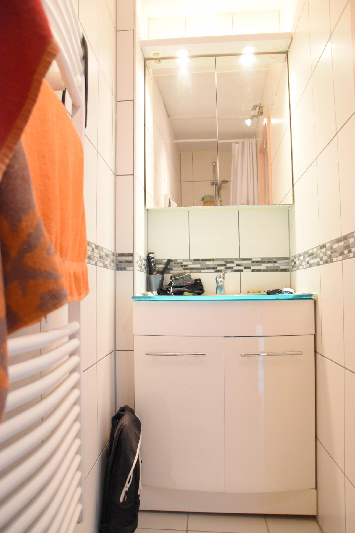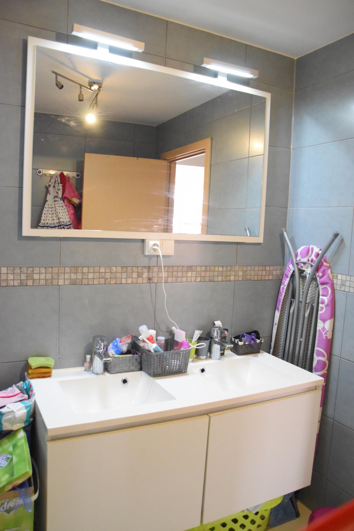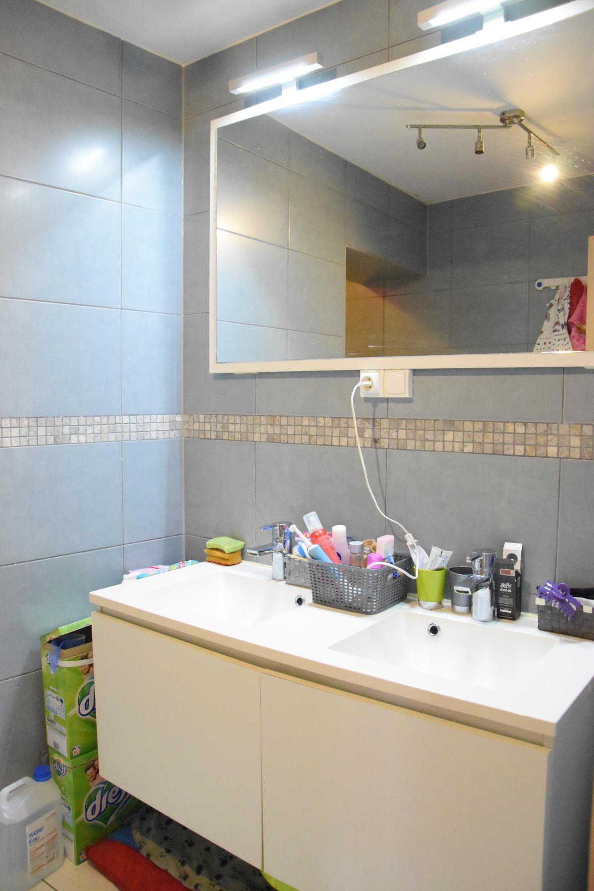 Equipements des salles d’eau : -salle de bains : double meuble évier avec miroir et luminaires, bain, radiateur porte serviettes, raccordement pour la machine à laver -salle de douche : meuble évier avec miroir et luminaires, douche, radiateur porte serviettes