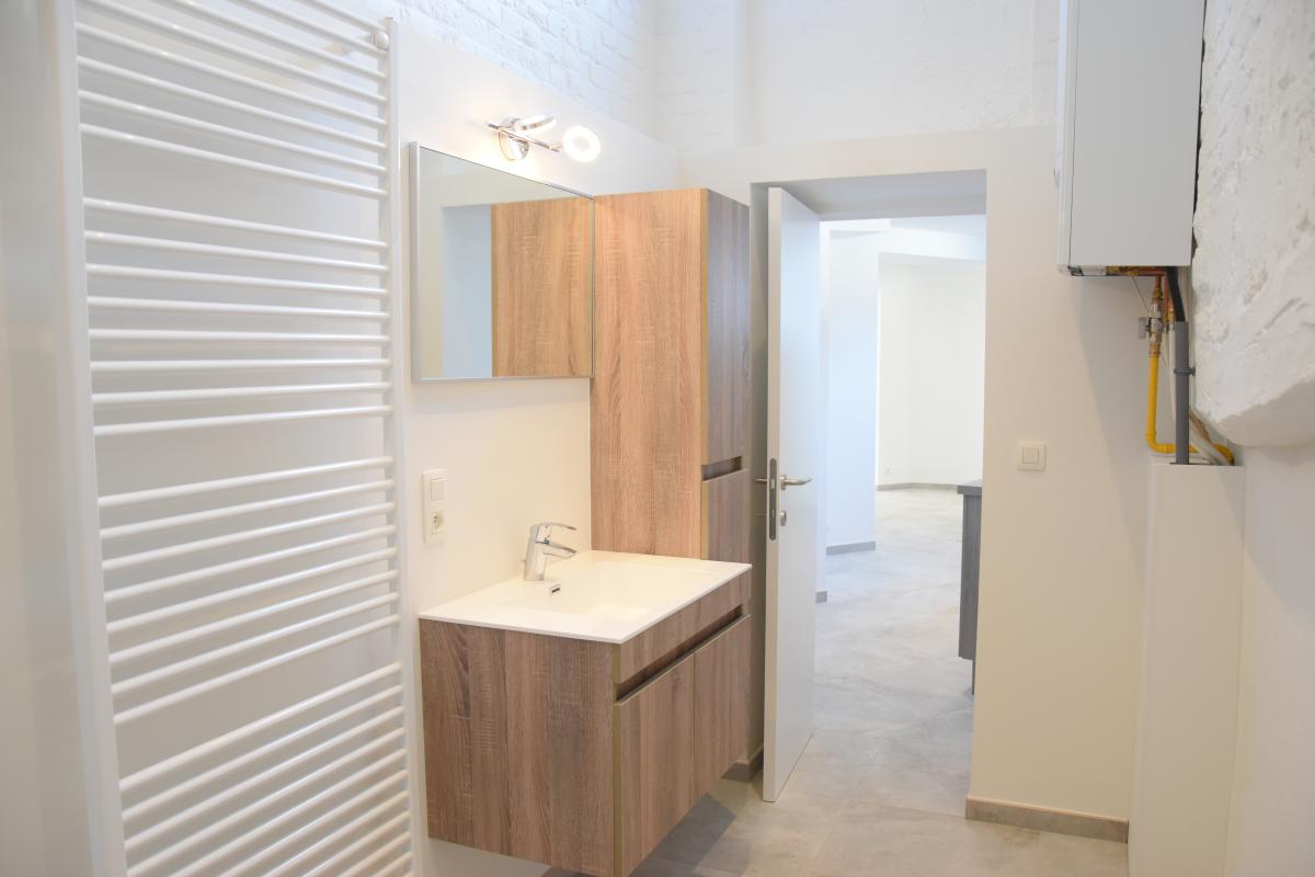 Maison entièrement rénovée en 2019 : -toiture principale : nouvelle charpente, nouvelles tuiles -toiture plate : nouveau roofing + isolation -nouveaux châssis PVC double vitrage -nouvelle cuisine : évier, égouttoir, four, hotte, taque vitro-céramique, frigo, lave-vaisselle, plan de travail -nouvelle salle d’eau : douche, WC suspendu, meuble-évier, radiateur porte-serviettes -nouvelle installation électrique (certificat conforme !) -nouveaux faux plafonds avec spots Led au rez-de-chaussée -nouveaux revêtements de sols (carrelage au rez, parquet flottant au 1er étage) -nouvelles portes (quasiment partout) -nouvelles peintures à l’intérieur + en façade avant -nouveau système de chauffage central au gaz -nouvelle chaudière murale Vaillant (à condensation) -nouveaux radiateurs
