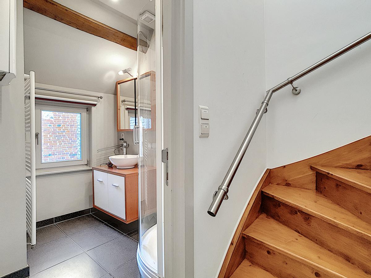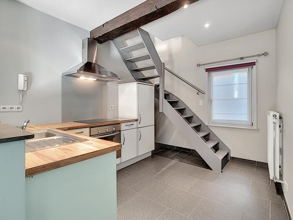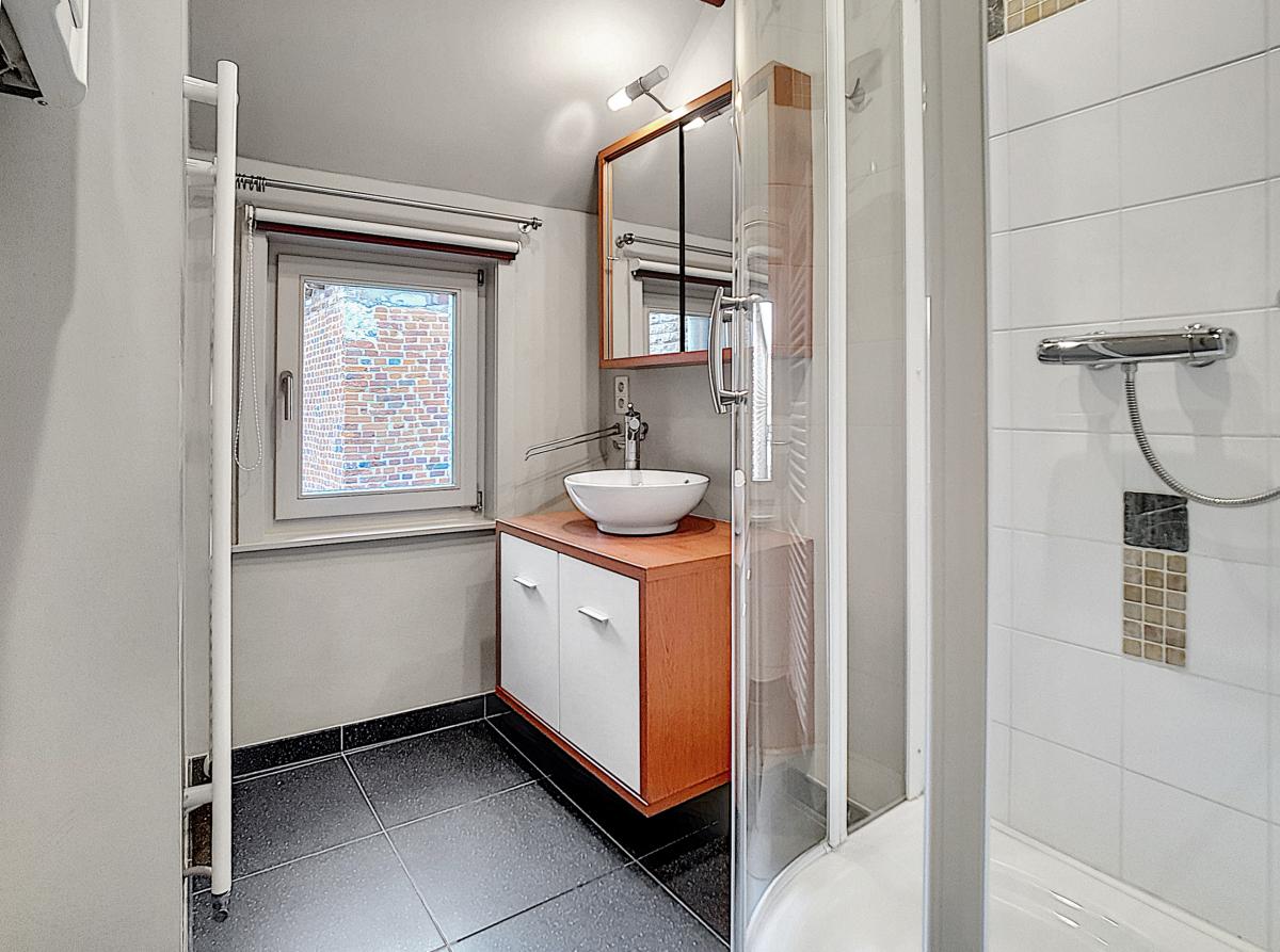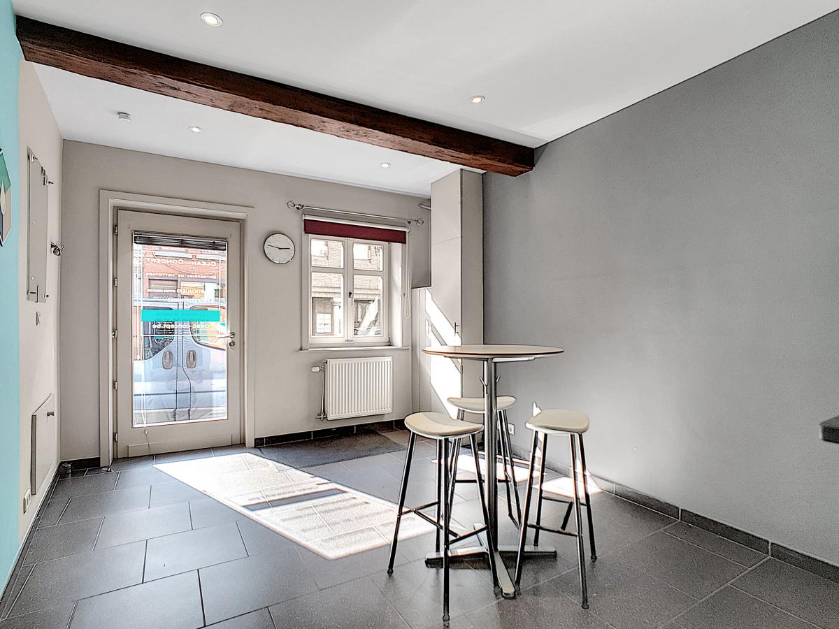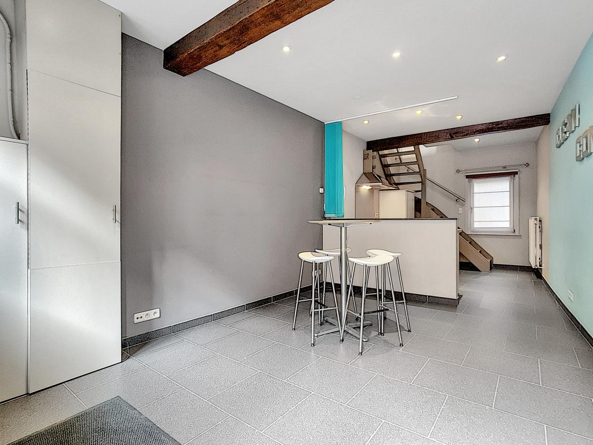 Vous êtes à la recherche d’un nid douillet à proximité de nombreuses commodités et vous permettant de tout faire à pied ? Ne cherchez plus ! Située à Ath, à environ 50m de la Grand’Place, cette habitation vous offre, en son rez-de-chaussée, un séjour avec cuisine équipée (évier, égouttoir, LV, four, taque vitro, hotte, frigo), le tout entièrement carrelé au sol. Le 1er étage est doté quant à lui d’un hall de nuit, d’une chambre de +/-11.7m², d’une toilette (avec WC suspendu), et d’une salle d’eau (avec douche, meuble-vasque et radiateur porte-serviettes). Le 2ème étage se compose d’une seconde chambre de +/-11m² agrémentée d’un placard encastré sur mesure et d’une mezzanine. D’un point de vue technique : C/C au gaz de ville avec chaudière Bulex à condensation, installation électrique conforme, DV haut rendement châssis bois, bonne performance énergétique (PEB : B), stores et barres de tentures placés (+ 2 velux avec stores et moustiquaires intégrés). Prix : faire offre à partir de 170 000€ sous réserve d’acceptation des vendeurs. Visite virtuelle sur demande. Gare d’Ath à +/-750m à pied (train direct vers Bruxelles en +/-40min), autoroute E429 à +/-5.7km (Bruxelles-Tournai-Lille), nombreux commerces et écoles à proximité, et marché hebdomadaire le jeudi ! L’Esplanade se trouvant à 300m, vous pourrez profiter du bon air à travers ce très bel espace vert à la fois ludique, sportif, et convivial, mais également très romantique grâce à son parc joliment agrémenté. Ath, ville très dynamique, vous séduira par son folklore local, la convivialité de ses aménagements urbains, et les jolis décors végétaux la garnissant à la belle saison. Un simple rayon de soleil suffit à remplir les terrasses ! Vous vous y sentirez bien…