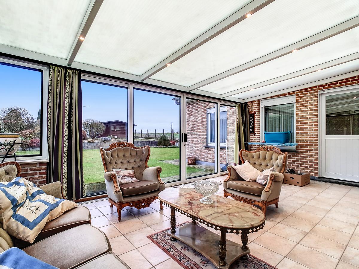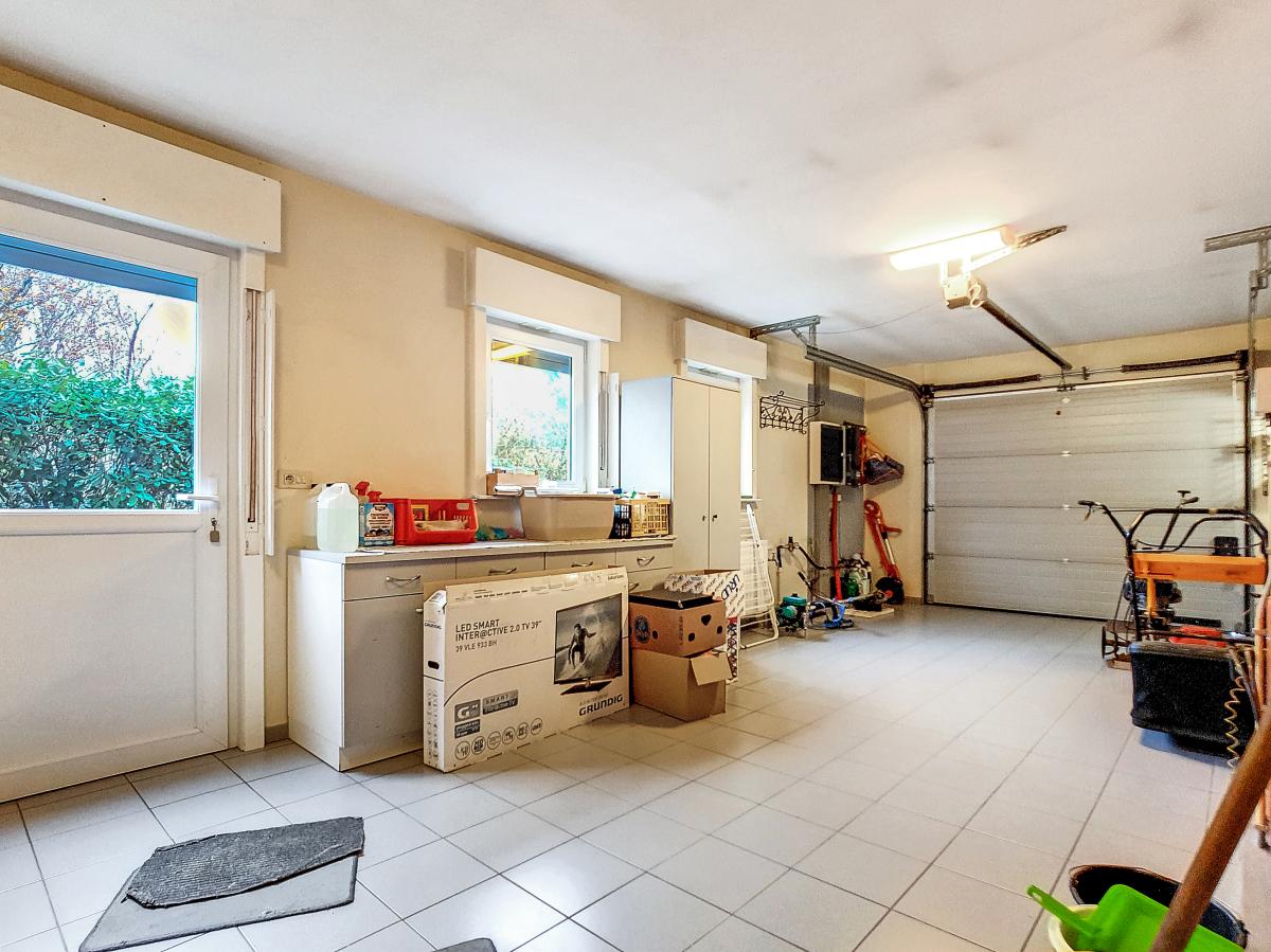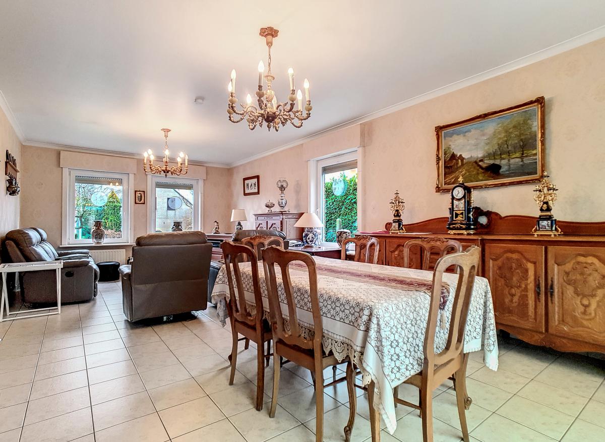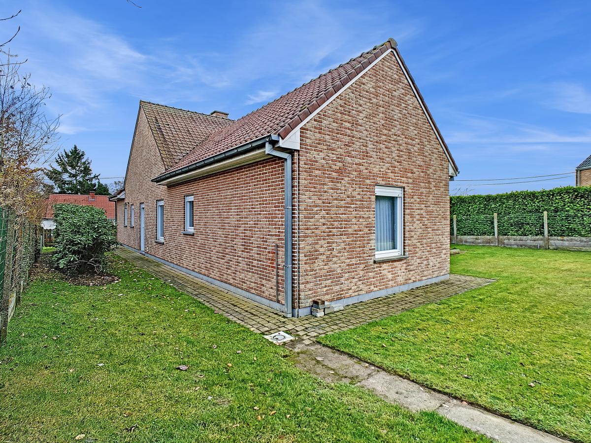 Située à Chapelle-à-Oie, sur une parcelle de 15a85, cette maison plain pied vous séduira par sa luminosité et ses surfaces. D’une superficie de +/-147m², cette construction vous offre un hall d’entrée avec WC séparé, un spacieux séjour, une cuisine équipée de +/-14.5m², un hall de nuit, 2 chambres à coucher (de +/-14.4 et 12.6m²), une salle de bains (avec WC, baignoire, meuble-évier), un grand garage carrelé et chauffé de +/-33.5m² avec porte électrique, et une véranda de +/-20m² donnant sur un agréable jardin avec chalet. D’un point de vue technique : maison préfabriquée Danilith, système de chauffage central au mazout (chaudière Viessmann), châssis PVC double vitrage, installation électrique conforme, citerne d’eau de pluie avec groupe hydrophore, volets. Commodités : E429 à +/-10km (Bruxelles-Tournai-Lille), N7 à +/-1.5km, gare d’Ath à +/-10.8km (train direct vers Bruxelles en +/-40min), gare de Leuze à +/-5.2km, arrêt de bus à +/-220m. Prix : faire offre à partir de 220 000 EUROS sous réserve d’acceptation des vendeurs. Visite virtuelle sur demande.