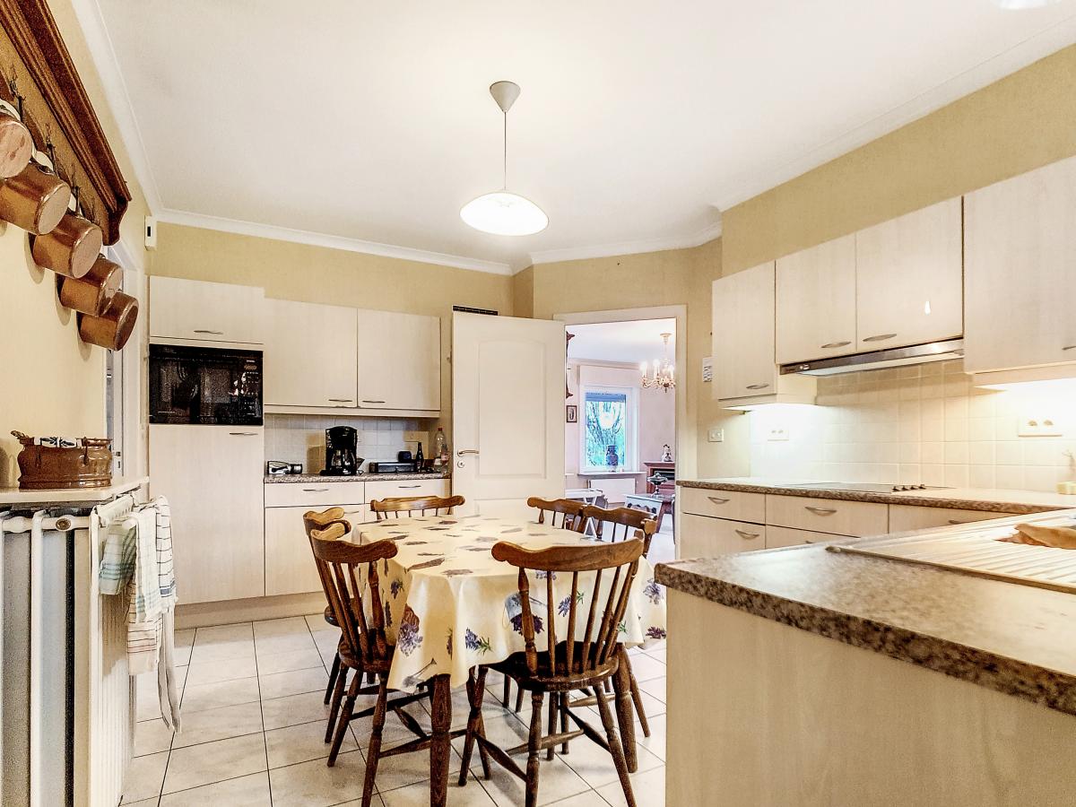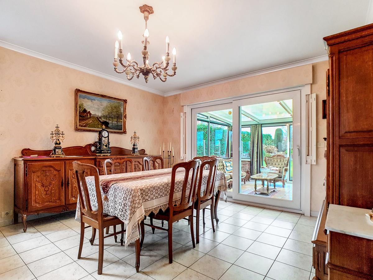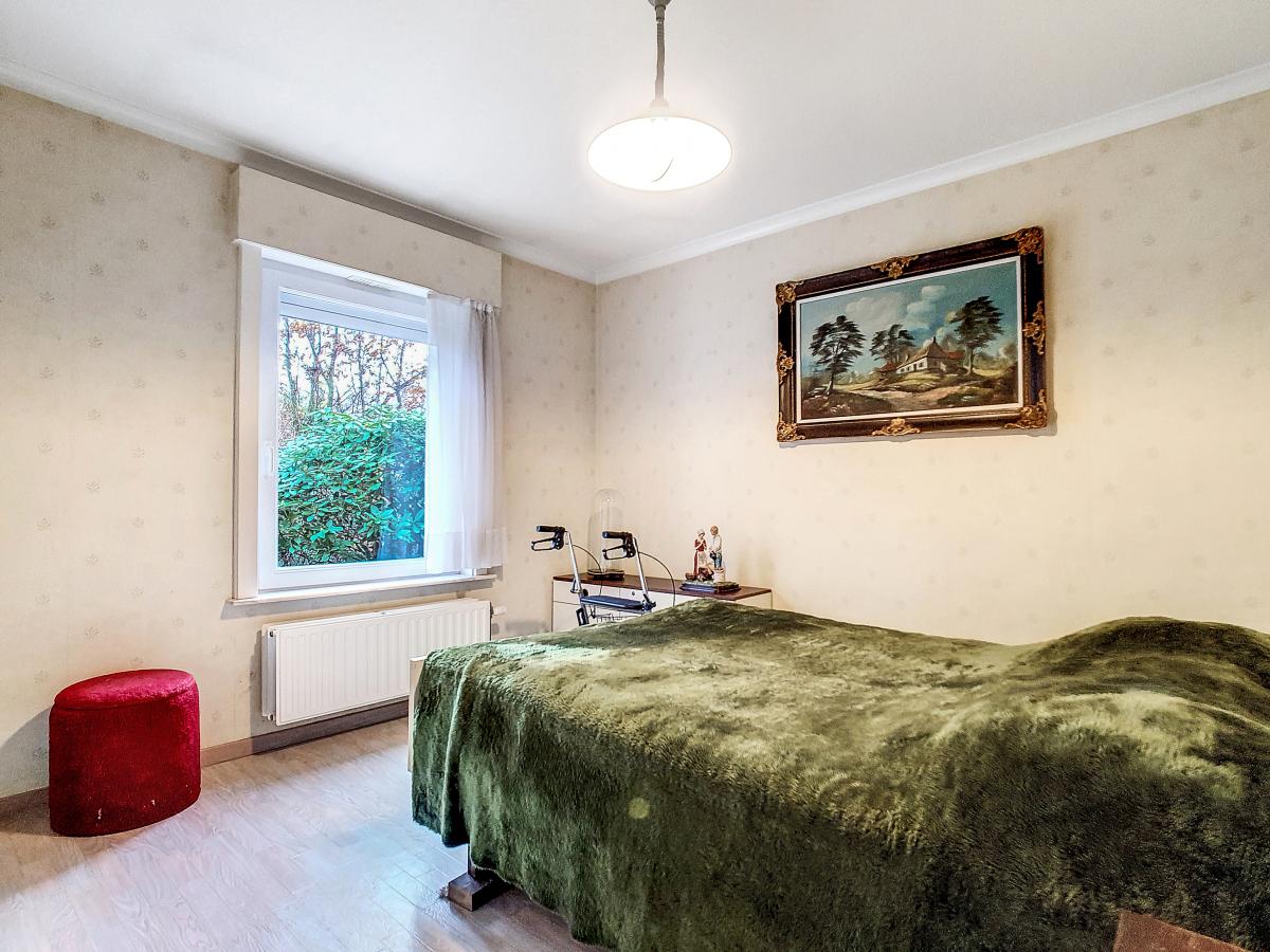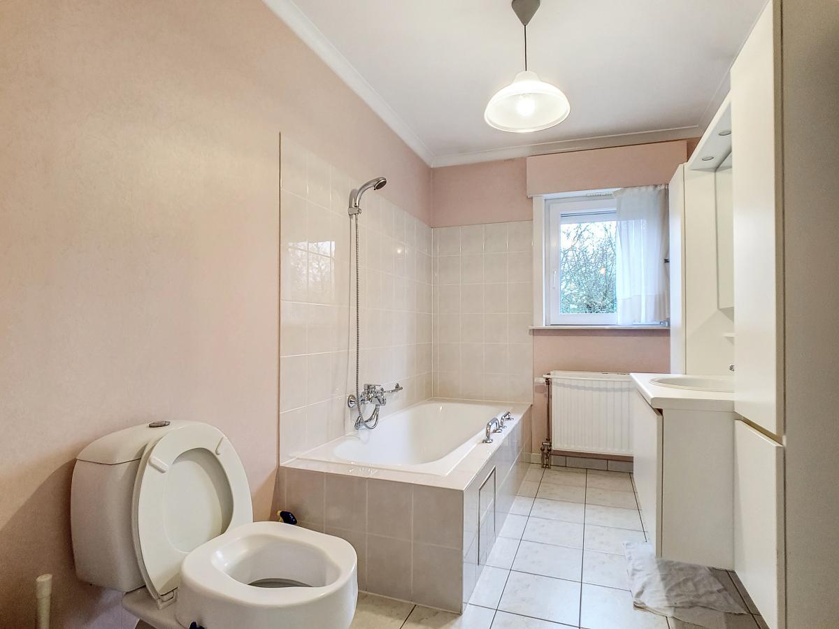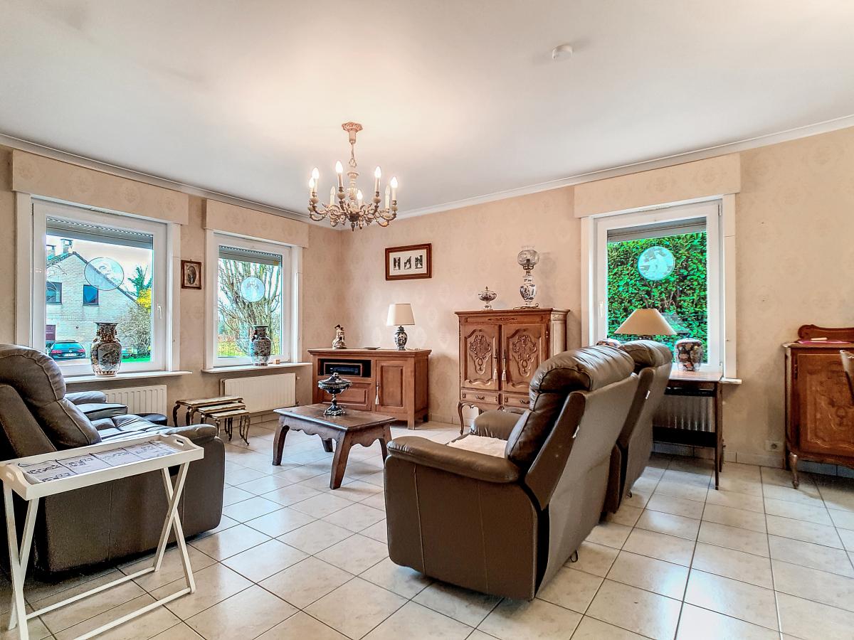 Située à Chapelle-à-Oie, sur une parcelle de 15a85, cette maison plain pied vous séduira par sa luminosité et ses surfaces. D’une superficie de +/-147m², cette construction vous offre un hall d’entrée avec WC séparé, un spacieux séjour, une cuisine équipée de +/-14.5m², un hall de nuit, 2 chambres à coucher (de +/-14.4 et 12.6m²), une salle de bains (avec WC, baignoire, meuble-évier), un grand garage carrelé et chauffé de +/-33.5m² avec porte électrique, et une véranda de +/-20m² donnant sur un agréable jardin avec chalet. D’un point de vue technique : maison préfabriquée Danilith, système de chauffage central au mazout (chaudière Viessmann), châssis PVC double vitrage, installation électrique conforme, citerne d’eau de pluie avec groupe hydrophore, volets. Commodités : E429 à +/-10km (Bruxelles-Tournai-Lille), N7 à +/-1.5km, gare d’Ath à +/-10.8km (train direct vers Bruxelles en +/-40min), gare de Leuze à +/-5.2km, arrêt de bus à +/-220m. Prix : faire offre à partir de 220 000 EUROS sous réserve d’acceptation des vendeurs. Visite virtuelle sur demande.