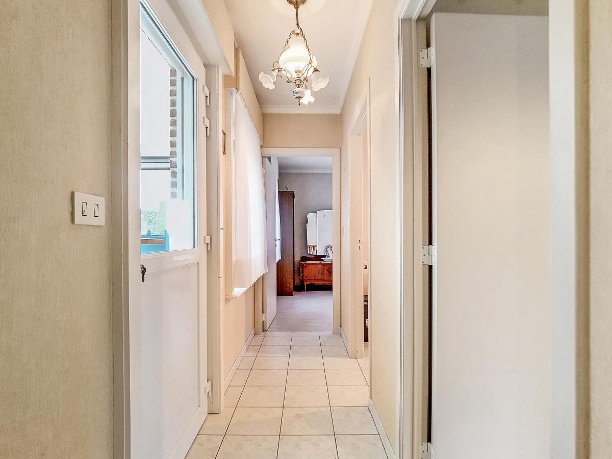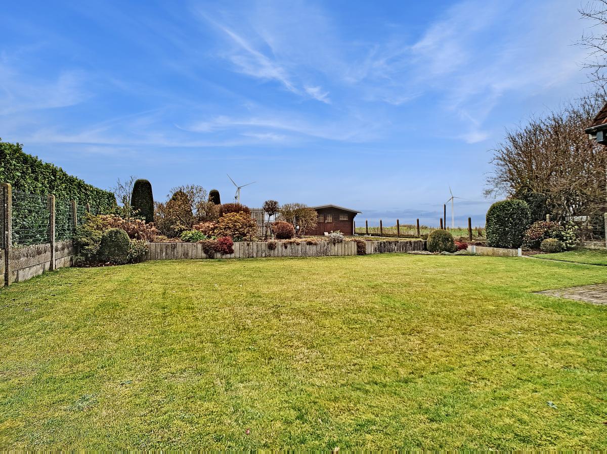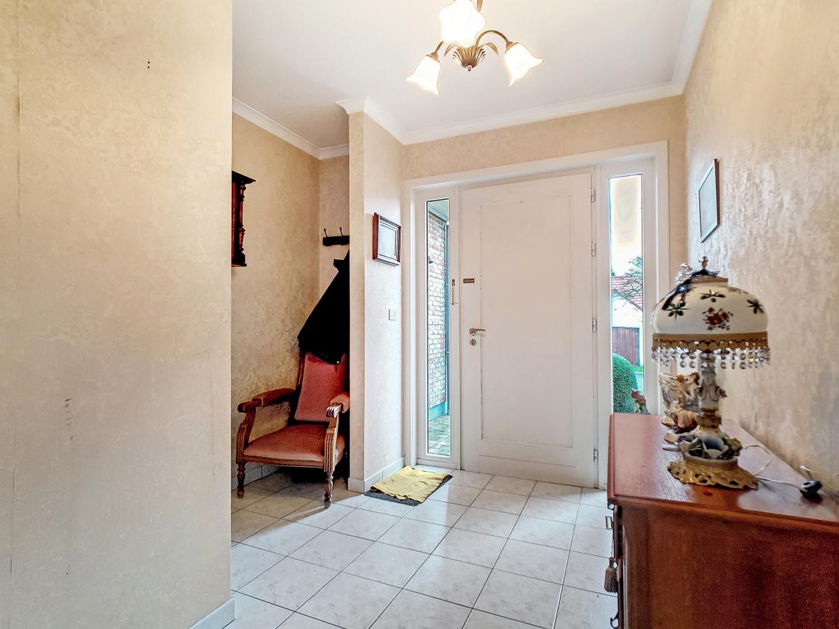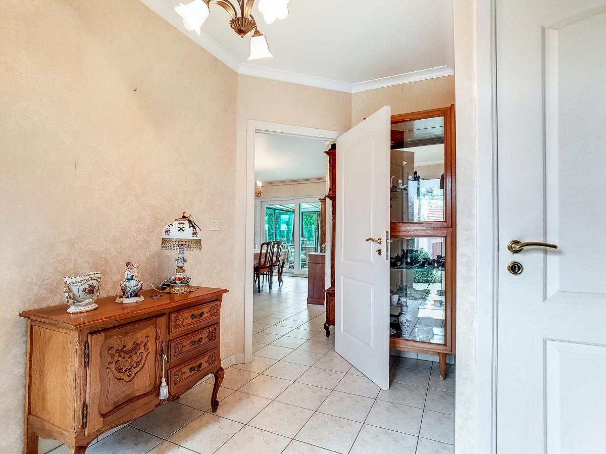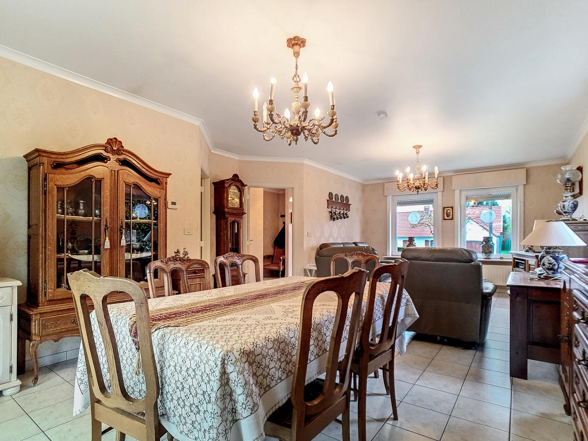 Située à Chapelle-à-Oie, sur une parcelle de 15a85, cette maison plain pied vous séduira par sa luminosité et ses surfaces. D’une superficie de +/-147m², cette construction vous offre un hall d’entrée avec WC séparé, un spacieux séjour, une cuisine équipée de +/-14.5m², un hall de nuit, 2 chambres à coucher (de +/-14.4 et 12.6m²), une salle de bains (avec WC, baignoire, meuble-évier), un grand garage carrelé et chauffé de +/-33.5m² avec porte électrique, et une véranda de +/-20m² donnant sur un agréable jardin avec chalet. D’un point de vue technique : maison préfabriquée Danilith, système de chauffage central au mazout (chaudière Viessmann), châssis PVC double vitrage, installation électrique conforme, citerne d’eau de pluie avec groupe hydrophore, volets. Commodités : E429 à +/-10km (Bruxelles-Tournai-Lille), N7 à +/-1.5km, gare d’Ath à +/-10.8km (train direct vers Bruxelles en +/-40min), gare de Leuze à +/-5.2km, arrêt de bus à +/-220m. Prix : faire offre à partir de 220 000 EUROS sous réserve d’acceptation des vendeurs. Visite virtuelle sur demande.