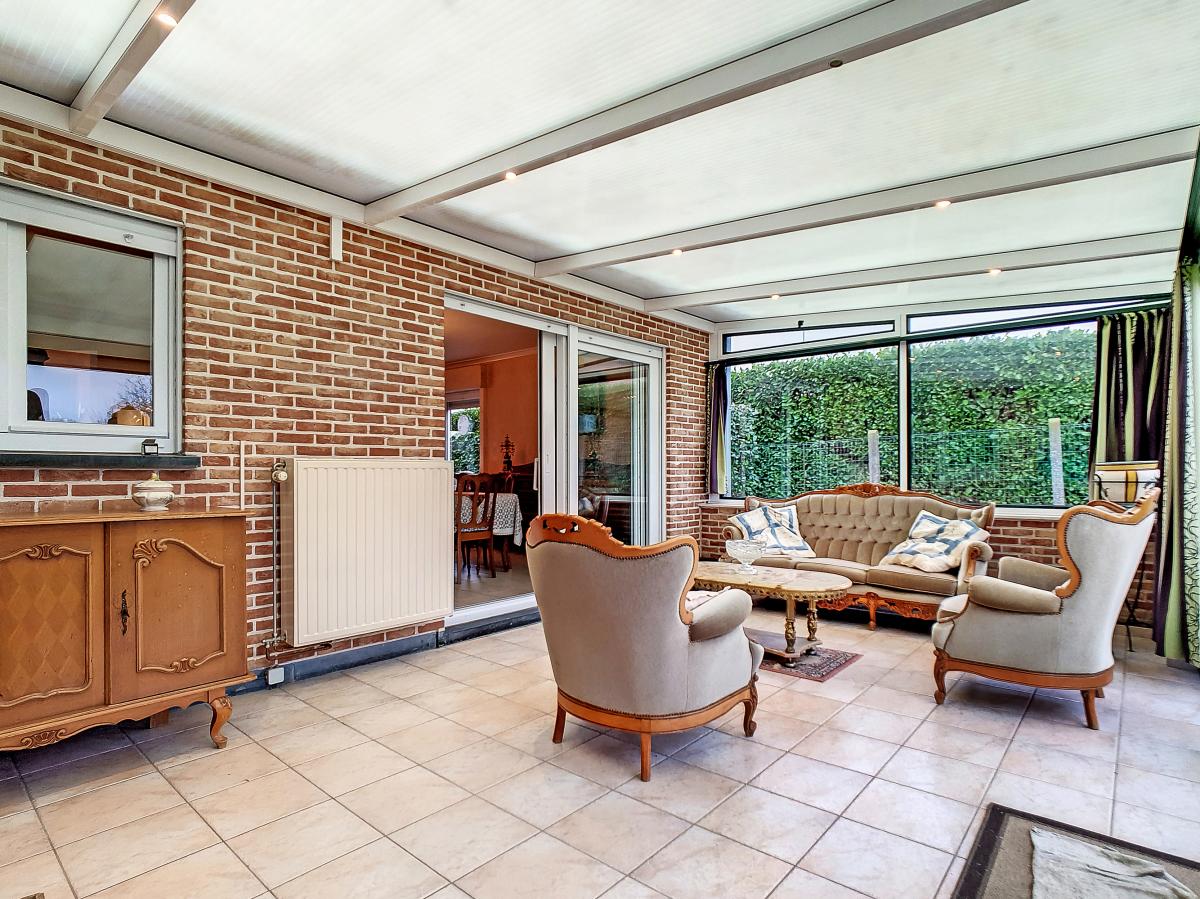 Hall d’entrée avec WC de +/-9.5m² Séjour de +/-32m² Cuisine de +/-14.5m² Hall de nuit de +/-3.1m² Chambre 1 de +/-14.4m² Salle d’eau de +/-7.2m² Chambre 2 de +/-12.6m² Garage de +/-33.5m² Véranda de +/-20m²