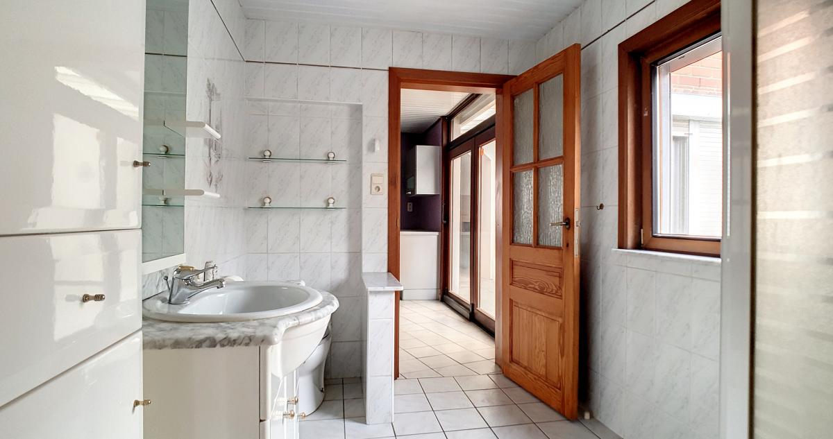 Située à Naast, sur une parcelle de 2a50, dans une zone d’habitat à caractère rural, cette agréable habitation de +/-134m² vous offre un hall d’entrée, une 1ère pièce de vie de +/-13.6m², une 2ème pièce de vie de +/-15.3m², une cuisine équipée, une véranda, une salle d’eau (avec douche, WC, meuble-évier), une buanderie, une pièce abritant les cuves à mazout, et un petit sas menant à une cave de +/-18.7m². Le 1er étage se compose d’un petit hall desservant 2 chambres à coucher (de +/-18.5 et 14.3m²) dont une donnant accès à un escalier fixe menant à un grenier aménageable de +/-30m². Une terrasse et un agréable jardin permettent en outre de profiter du bon air. (Zone agricole à l’arrière du terrain) Chauffage : 2 poêles à mazout. Châssis récents en PVC double vitrage dans les 2 chambres. Autres châssis : certains en simple vitrage, certains en double vitrage. Nombreux volets au rez-de-chaussée. Compteur électrique bi-horaire. Gare de Soignies à +/-4.6km (train vers Bruxelles en +/-25min), autoroute E429 à +/-16.5km, plusieurs écoles à proximité, Grand’Place de Soignies à +/-5.5km (marché hebdomadaire au centre-ville le mardi). Prix : faire offre à partir de 175 000 € sous réserve d’acceptation des vendeurs.