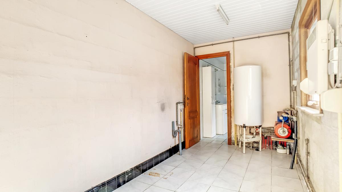 Hall d’entrée de +/-4.8m² Pièce de vie 1 de +/-13.6m² Pièce de vie 2 de +/-15.3m² Cuisine de +/-6.8m² Véranda de +/-10.3m² Salle d’eau de +/-5.5m² Buanderie de +/-9m² Pièce avec cuves à mazout de +/-5.2m² Sas d’accès vers la cave de +/-0.8m²