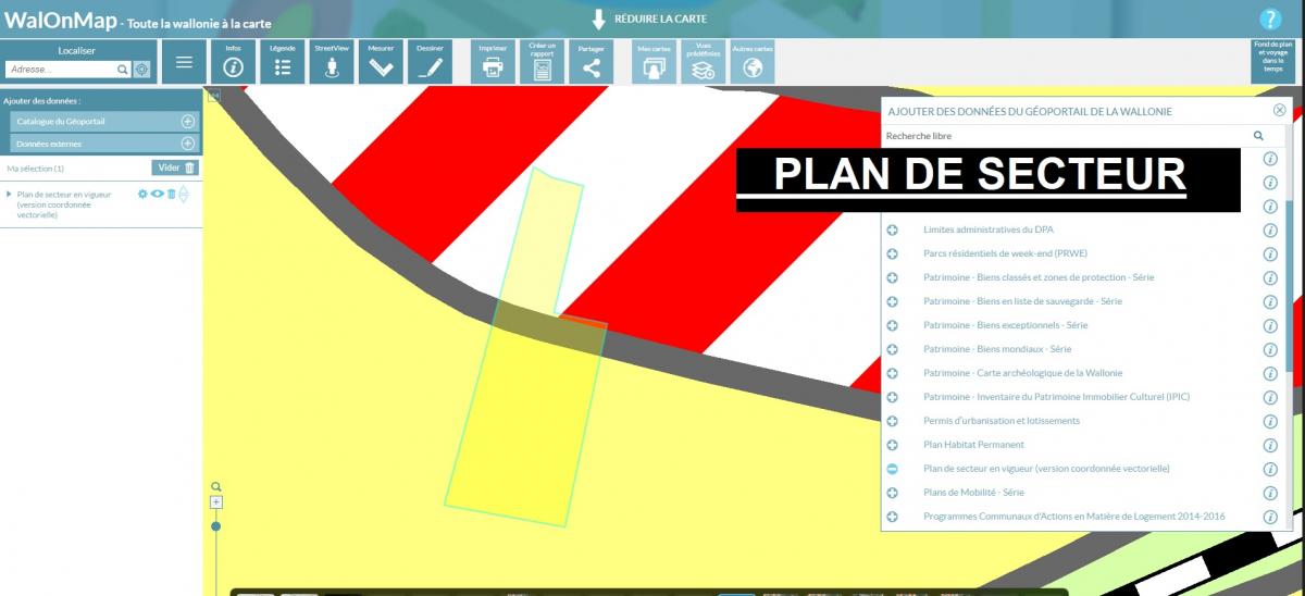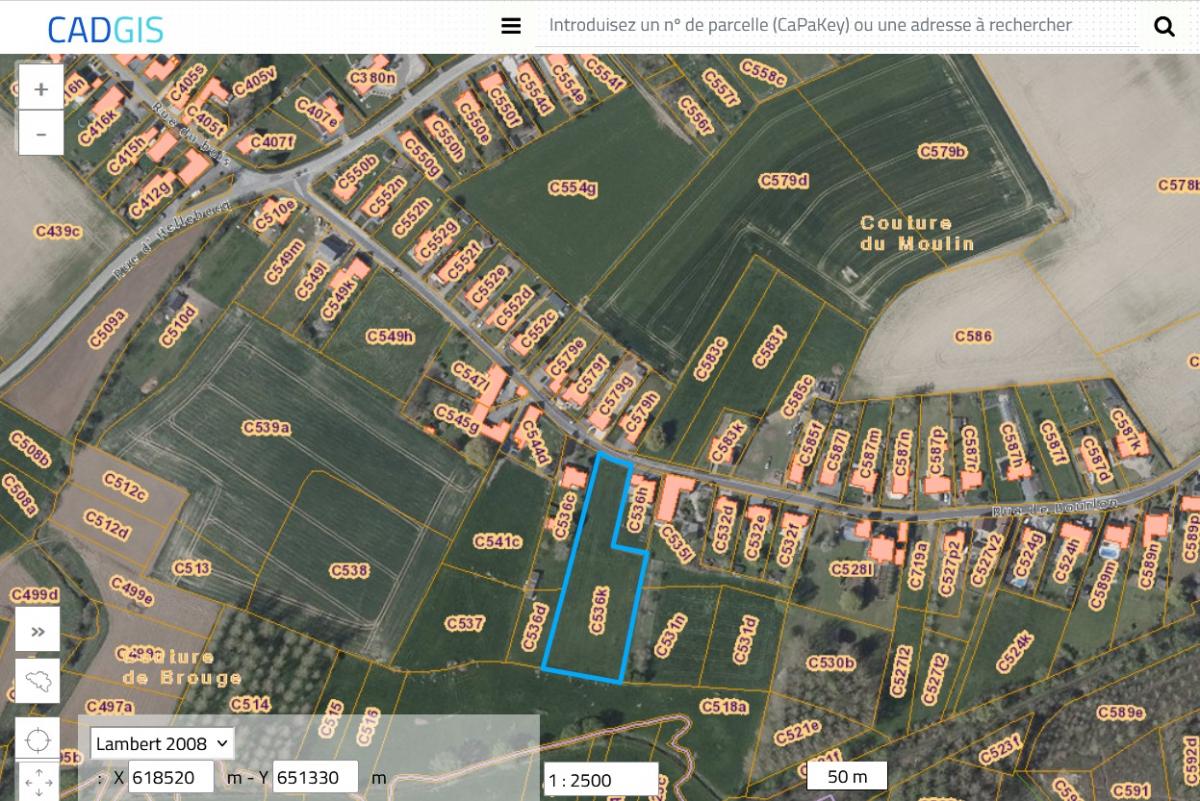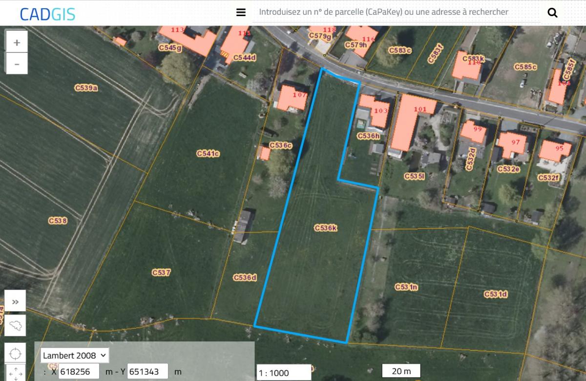 Type de zone : aire de bâti d’intérêt paysager Prescriptions urbanistiques disponibles sur simple demande à l’agence Plan de secteur : une partie en zone d’habitat à caractère rural (sur 50m de profondeur) et une partie en zone agricole