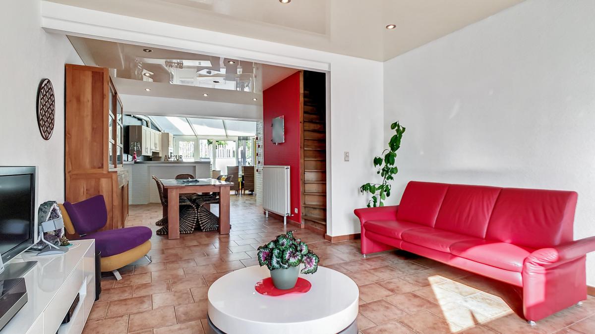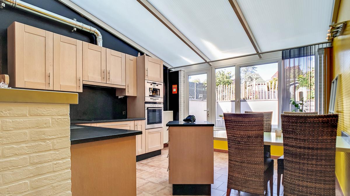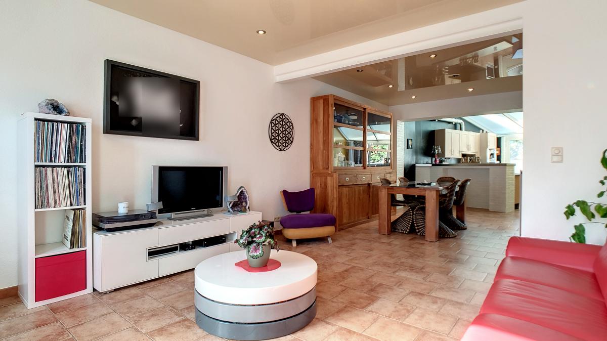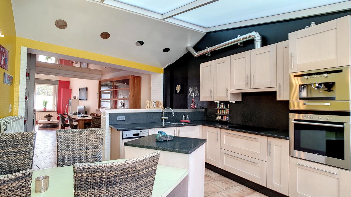 Séjour (salon-salle à manger) de +/-32.8m² Cuisine de +/-17.6m²