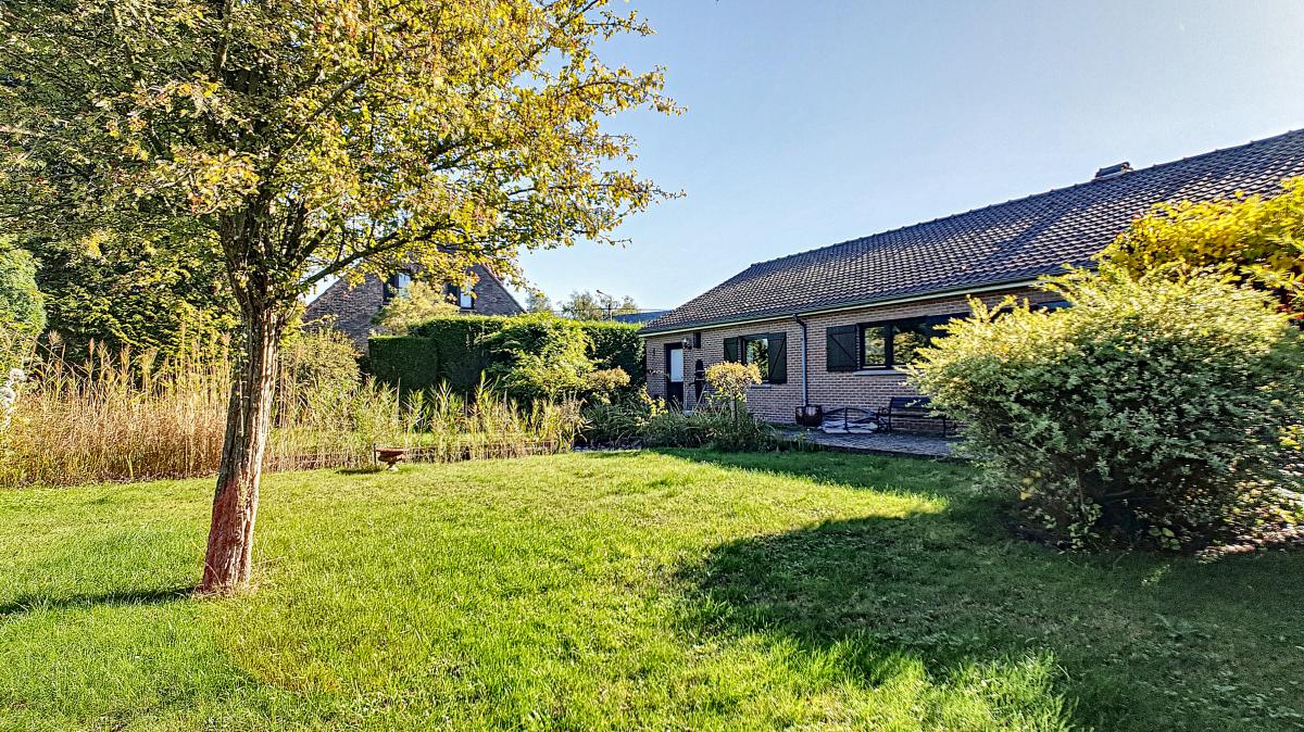 Située dans la magnifique entité de Silly, et plus précisément dans l’agréable village de Bassilly, sur une parcelle de 11a67, cette belle maison plain-pied en séduira plus d’un. D’une superficie de +/-124m², elle vous offre un hall d’entrée, un lumineux séjour de +/-30.7m², une cuisine équipée de +/-12.5m², une buanderie, un grand hall de nuit sous forme de couloir, 3 chambres (de +/-10, 10,1 et 15.9m²), une salle de bains, un garage, et un grenier. En outre, un superbe jardin agrémenté d’un étang vous permet de profiter paisiblement du soleil en toute intimité. Localisée à quelques pas d’une large zone agricole traversée pour un chemin sinueux invitant à la promenade, vous pourrez prévoir quotidiennement de petites escapades champêtres à travers une jolie campagne vallonée rimant avec calme et zénitude. Un bol d’air inestimable ! Commodités : gare de Silly à +/-2.2km (train direct vers Bruxelles en +/-30min), autoroute E429 à +/-1.3km (Bruxelles, Tournai, Lille), école communale de Bassilly à +/-1km, et bien d’autres facilités à proximité (pharmacie, complexe sportif, boucherie, épicerie, etc.) Chauffage électrique, châssis double vitrage bois, stores solaires électriques, alarme, terrasse, chalet. Prix de vente : faire offre à partir de 297 500€ sous réserve d’acceptation des vendeurs.
