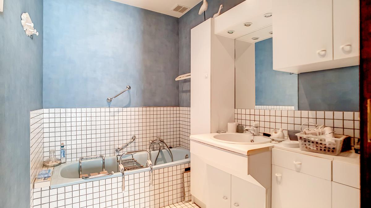 Équipements cuisine : taque vitrocéramique, hotte, four, lave-vaisselle, frigo, évier Équipements salle de bains : baignoire, meuble-évier