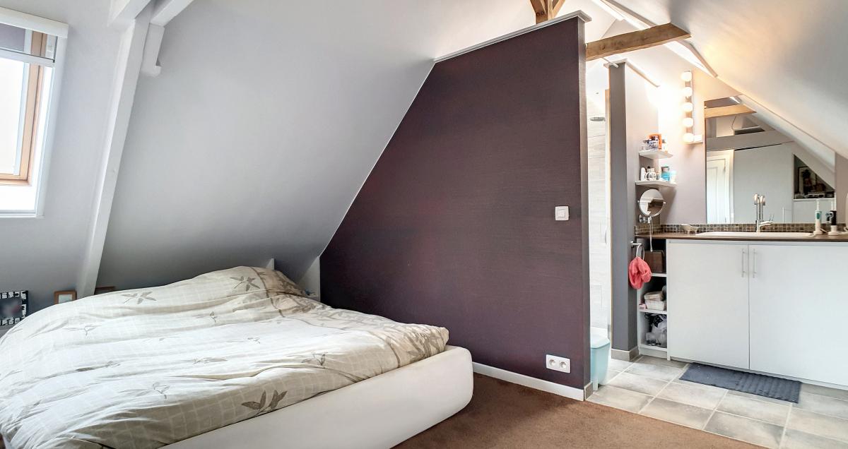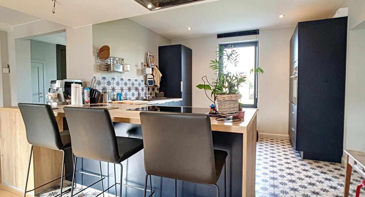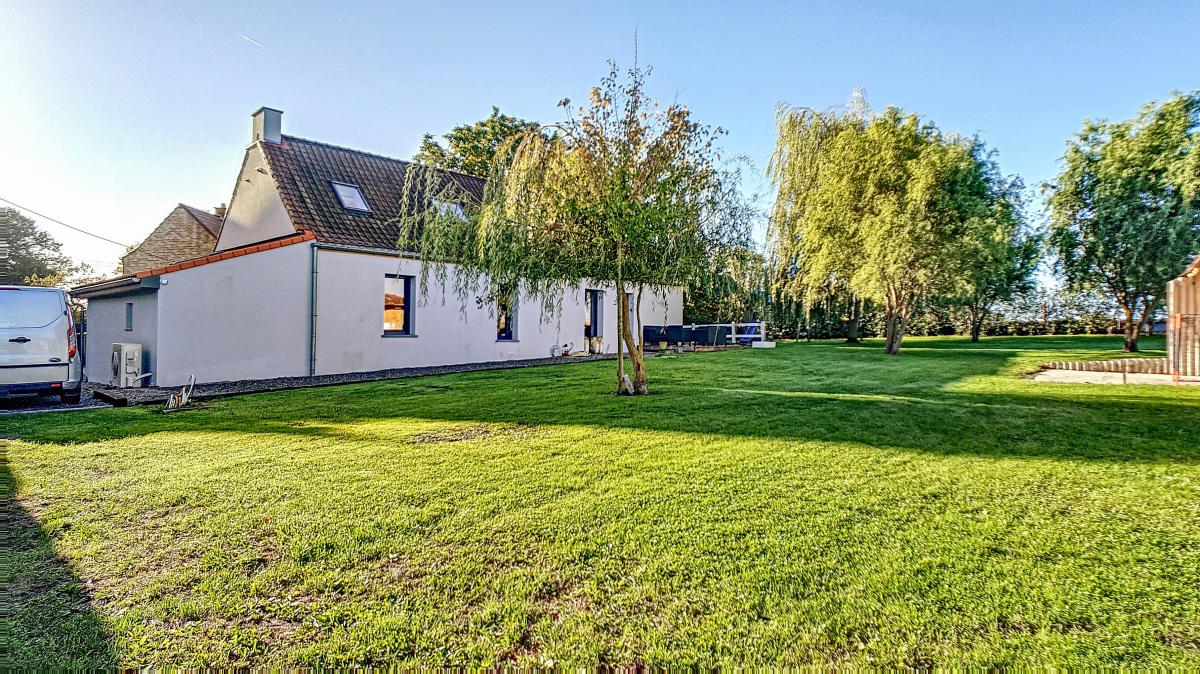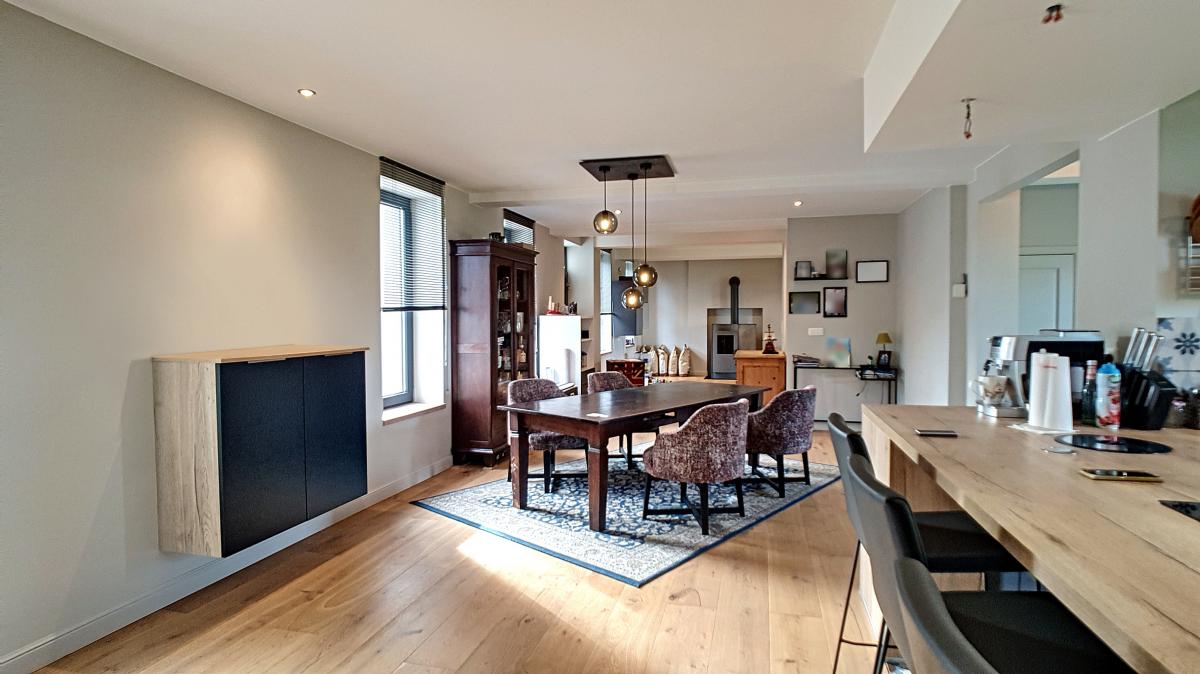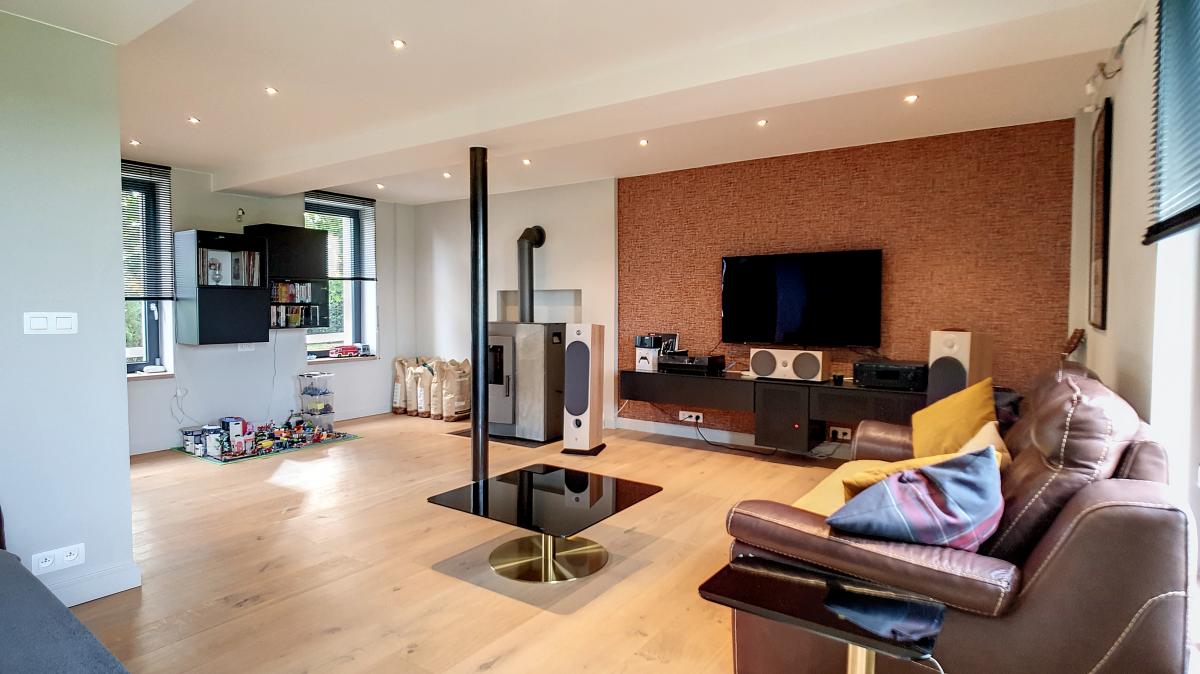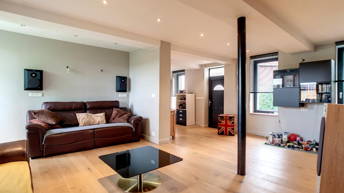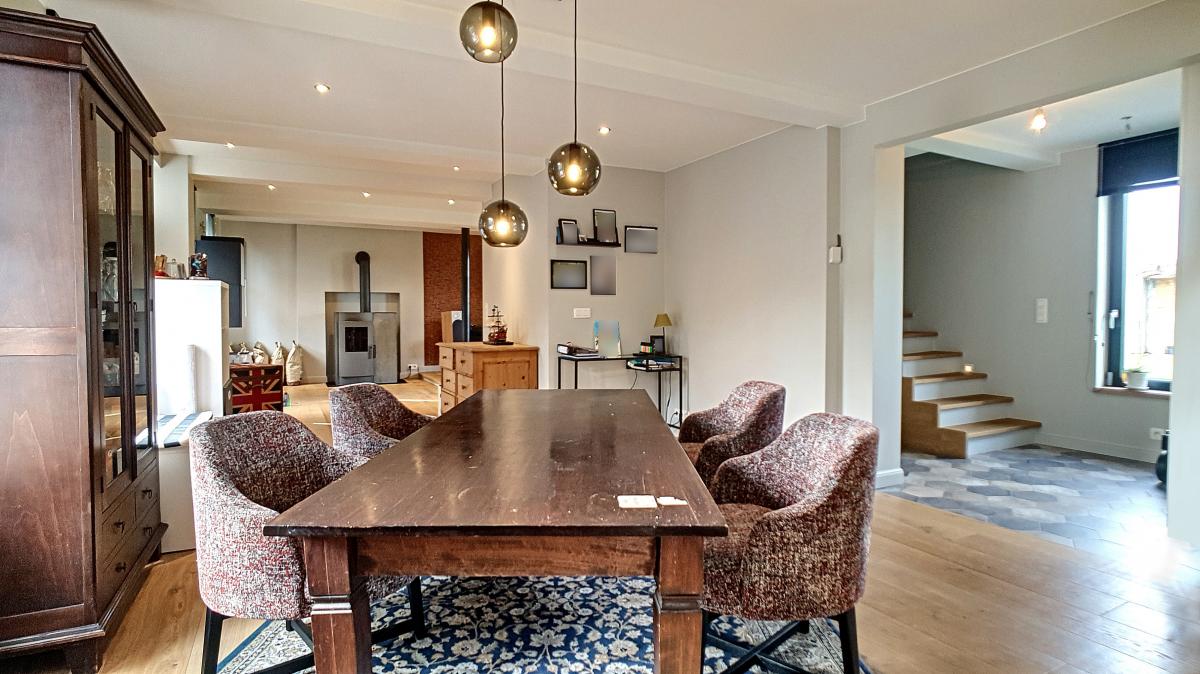 Située dans la commune de Frasnes-lez-Anvaing, une magnifique entité du Pays des Collines, cette maison de près de 147m² vous séduira par ses équipements récents, sa performance énergétique (PEB en B !), et sa localisation champêtre. Ayant été complètement rénovée ces dernières années avec des matériaux de qualité, elle offre, en son rez-de-chaussée, un agréable espace salon de +/-36.2m², une salle à manger de +/-31.6m², une cuisine ouverte entièrement équipée, une buanderie avec WC séparé, et un sas d’accès au 1er étage et à la cave du sous-sol. L’étage de l’habitation se compose d’un hall de nuit, d’un WC, d’une chambre avec douche et évier, et d’une suite parentale constituée d’une chambre garnie de nombreux placards et d’une salle de douche privative. Implantée sur une parcelle de 14a88, cette maison bénéficie d’un très beau jardin joliment arboré (doté d’une grande remise), et d’un parking en devanture accessible via un portail électrique. Pompe à chaleur, installation électrique conforme, châssis double vitrage haut rendement, alarme, adoucisseur. Autoroute E429 à +/-6.1km (Bruxelles-Tournai-Lille), gare de Tournai à +/-14.4km, N60 à +/-5.4km, arrêt de bus à +/-100m, centre de Frasnes-lez-Anvaing à +/-7.4km (nombreux commerces). Prix : faire offre à partir de 350 000 € sous réserve d’acceptation des vendeurs. (Les propriétaires se réservent le droit d’apprécier la hauteur ainsi que la qualité de toutes les offres qui leur seront transmises.) - Le poêle à pellets est non compris dans la vente.