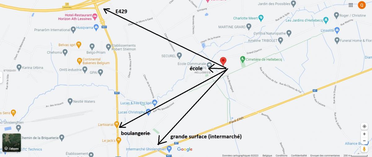 Place d’Hellebecq à +/-250m Place de Silly à +/-3.6km Sur la place même de Silly : pharmacie, coiffeur, B-post, restaurants, opticien, marché hebdomadaire le dimanche