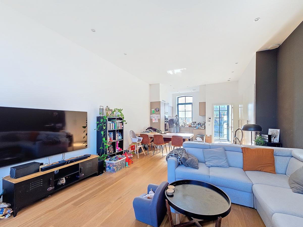 Située à Marcq, au sein du site exceptionnel baptisé « La Distillerie », cette habitation de standing de +/-138m² vous séduira par son style atypique. Elle propose, en son rez-de-chaussée, un hall d’entrée, un séjour avec cuisine ouverte entièrement équipée, et un hall avec WC. Le 1er étage se compose d’un hall de nuit, d’un 2ème WC, d’une chambre avec salle de douche, et d’une suite avec un hall garni de placards, une salle d’eau et une chambre. Le 2ème étage est doté d’un hall de nuit, d’une spacieuse chambre de près de 27m² munie de nombreuses armoires, et d’une 3ème pièce d’eau. En outre, une terrasse et un agréable jardin viennent agrémenter ce beau programme. Parking extérieur privatif. PEB en A. Chauffage par le sol au rez-de-chaussée, double vitrage haut rendement, système de ventilation double flux, nombreux placards encastrés. Loyer : 1 300€/mois (appartement + parking extérieur privatif) + 110€/mois de forfait (pour : éclairage extérieur du site, eau des citernes d’eau de pluie, poubelles molok, entretien des abords [dont entretien du jardin privatif], entretien de la chaudière) + 100€/mois de provision pour la consommation privée en chauffage. Le bien bénéficie de la proximité de nombreuses commodités : gare de Silly à +/-3.2km (train direct vers Bruxelles en +/-30min), autoroute E429 à +/-2.8km (Bruxelles, Tournai, Lille), arrêt de bus à quelques mètres, école à +/-2.7km, plusieurs grandes surfaces dans un rayon de 6km. Le site de la Distillerie vous offre également un grand espace extérieur commun avec balançoire, un local commun à vélos, une zone Molok, et des bornes électriques.