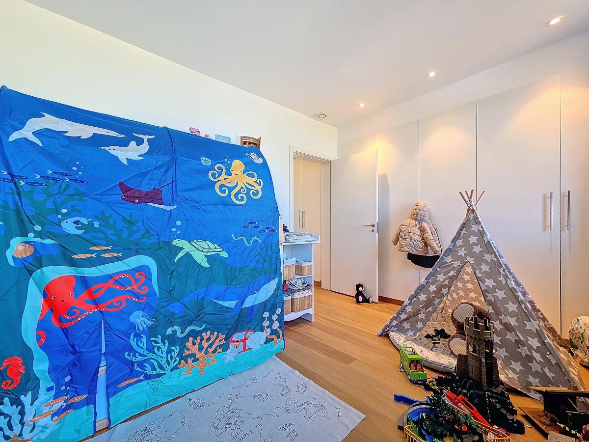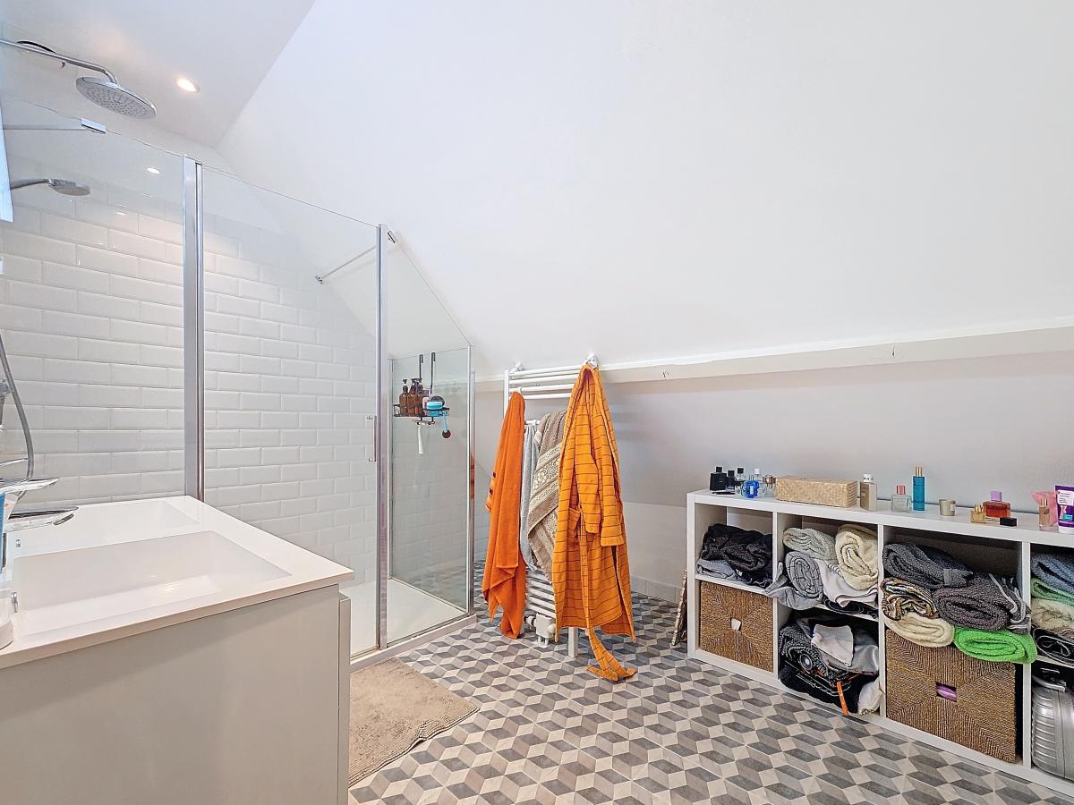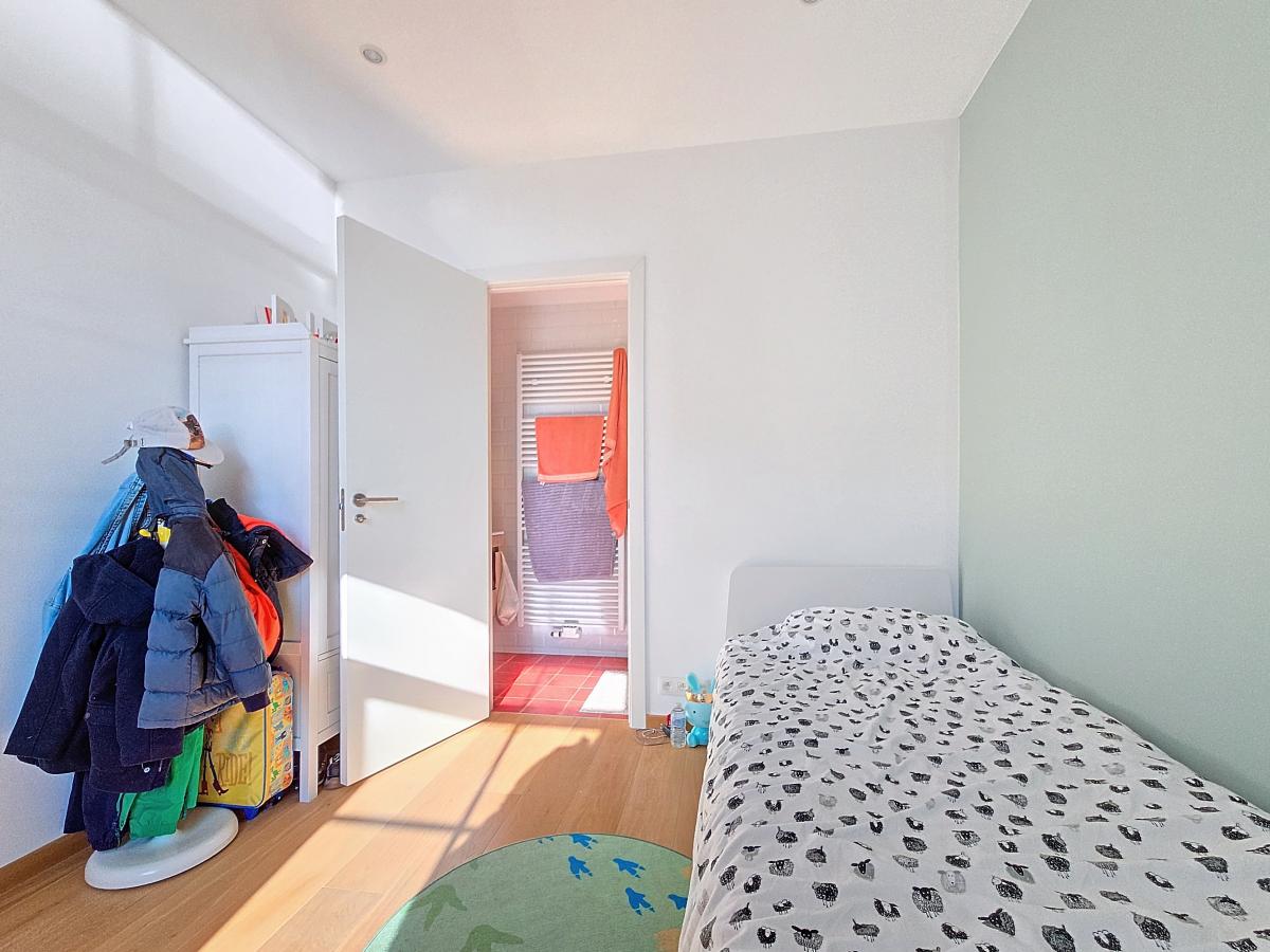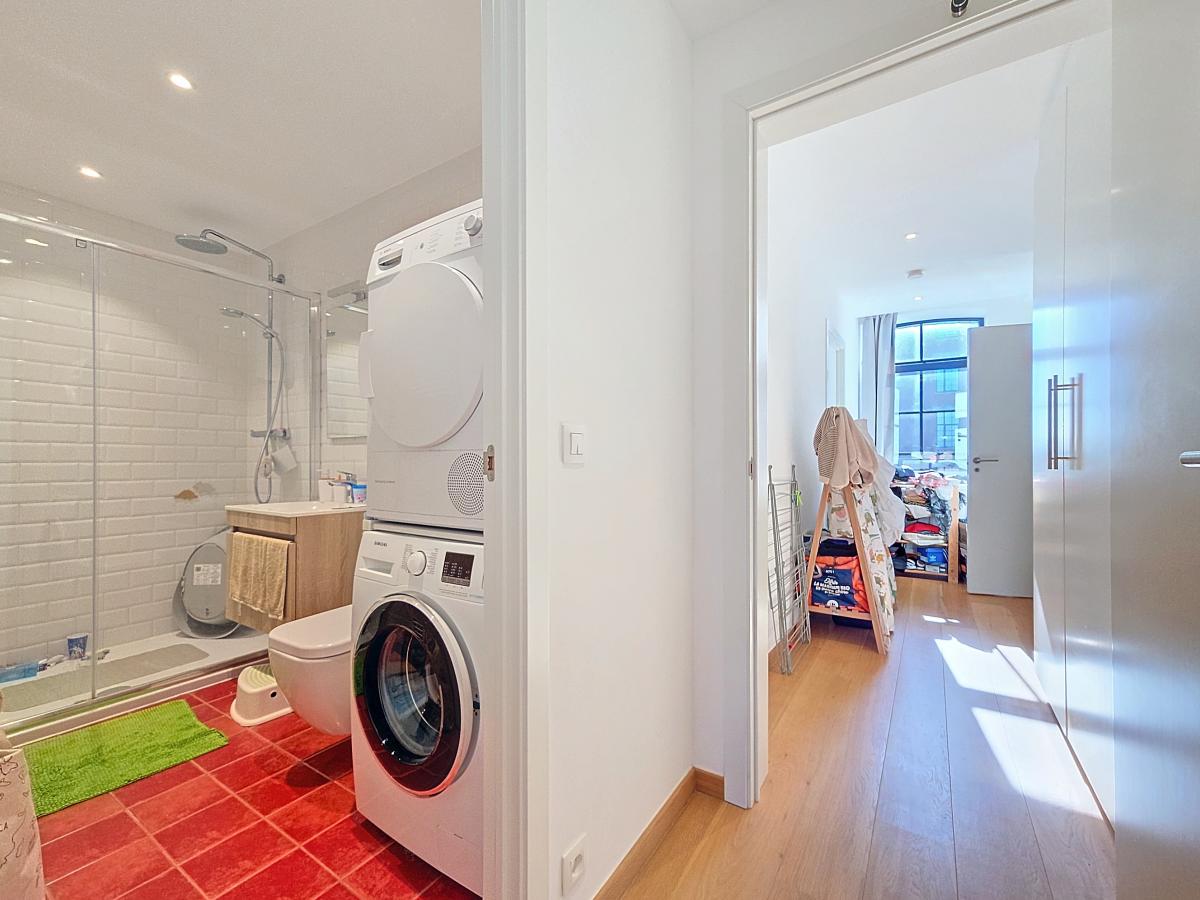 Suite parentale : Hall de +/-2.9m² Chambre de +/-13.4m² Salle de douche de +/-5m² (douche, radiateur porte-serviettes, WC, meuble-évier, miroir, raccordement pour machine à laver)