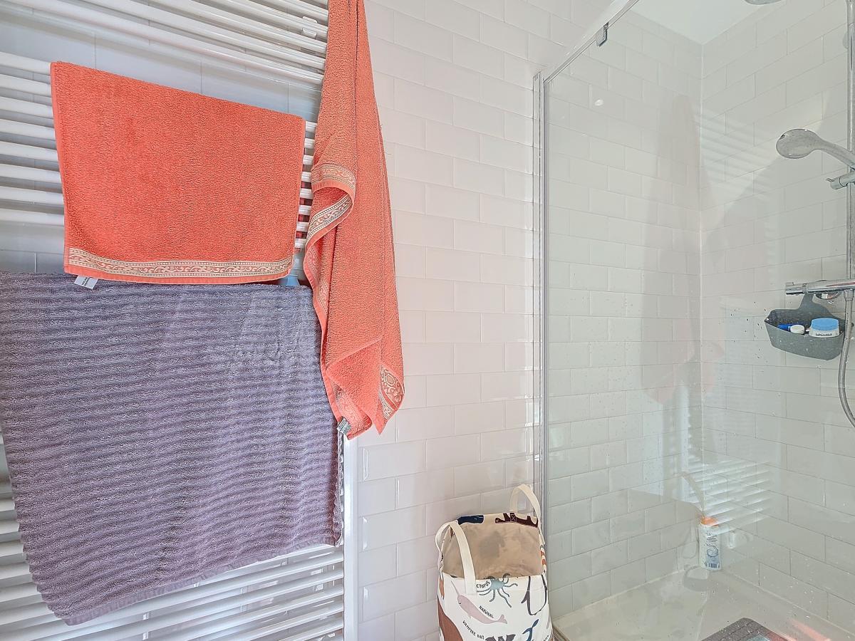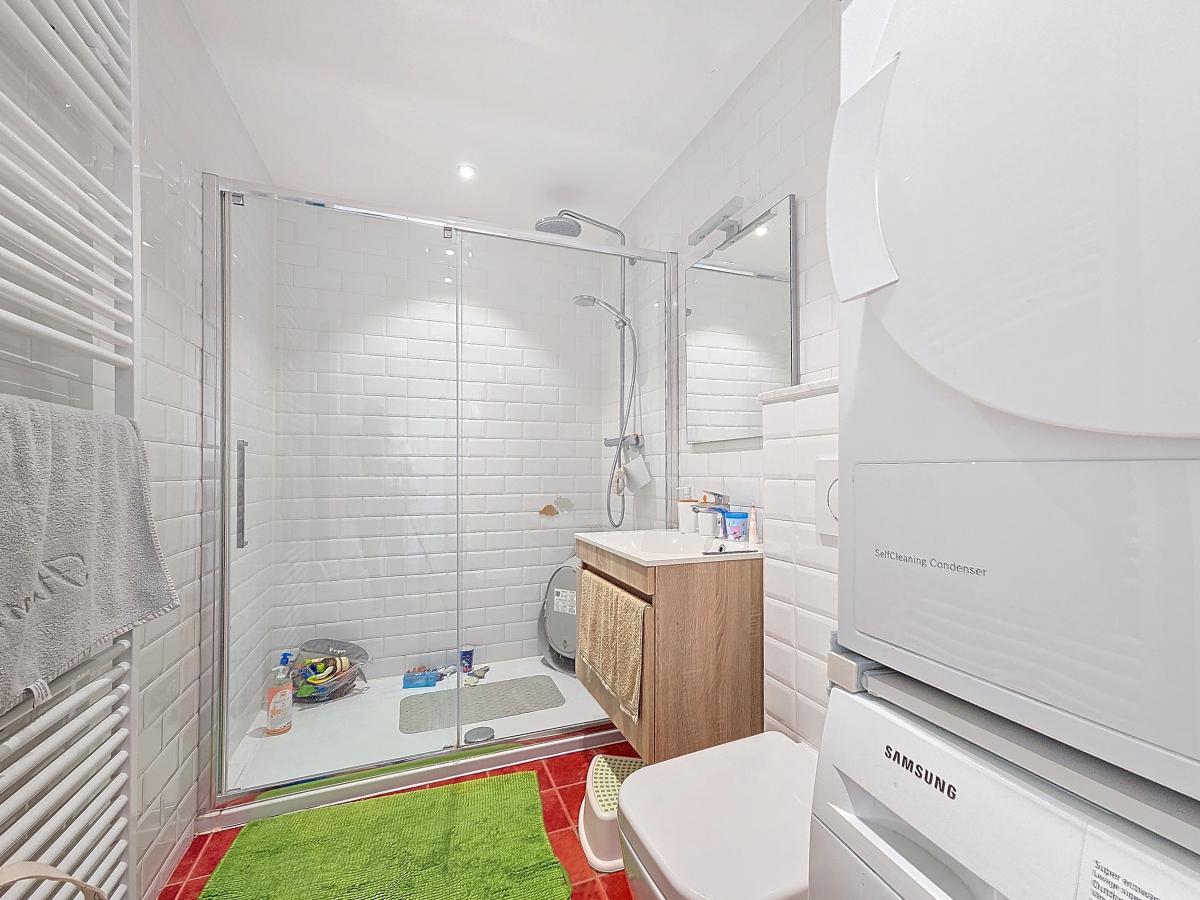 Hall de +/-3.7m² Chambre de +/-27.3m² Salle de douche de +/-9.5m² (meuble double évier, miroir, douche, radiateur porte-serviettes, WC)
