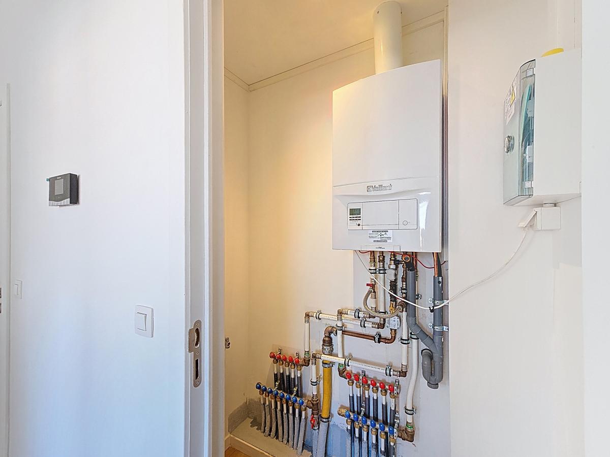 Châssis métallique double vitrage haut rendement Système de chauffage central au gaz Chaudière à condensation localisée dans la buanderie Présence d’un thermostat d’ambiance