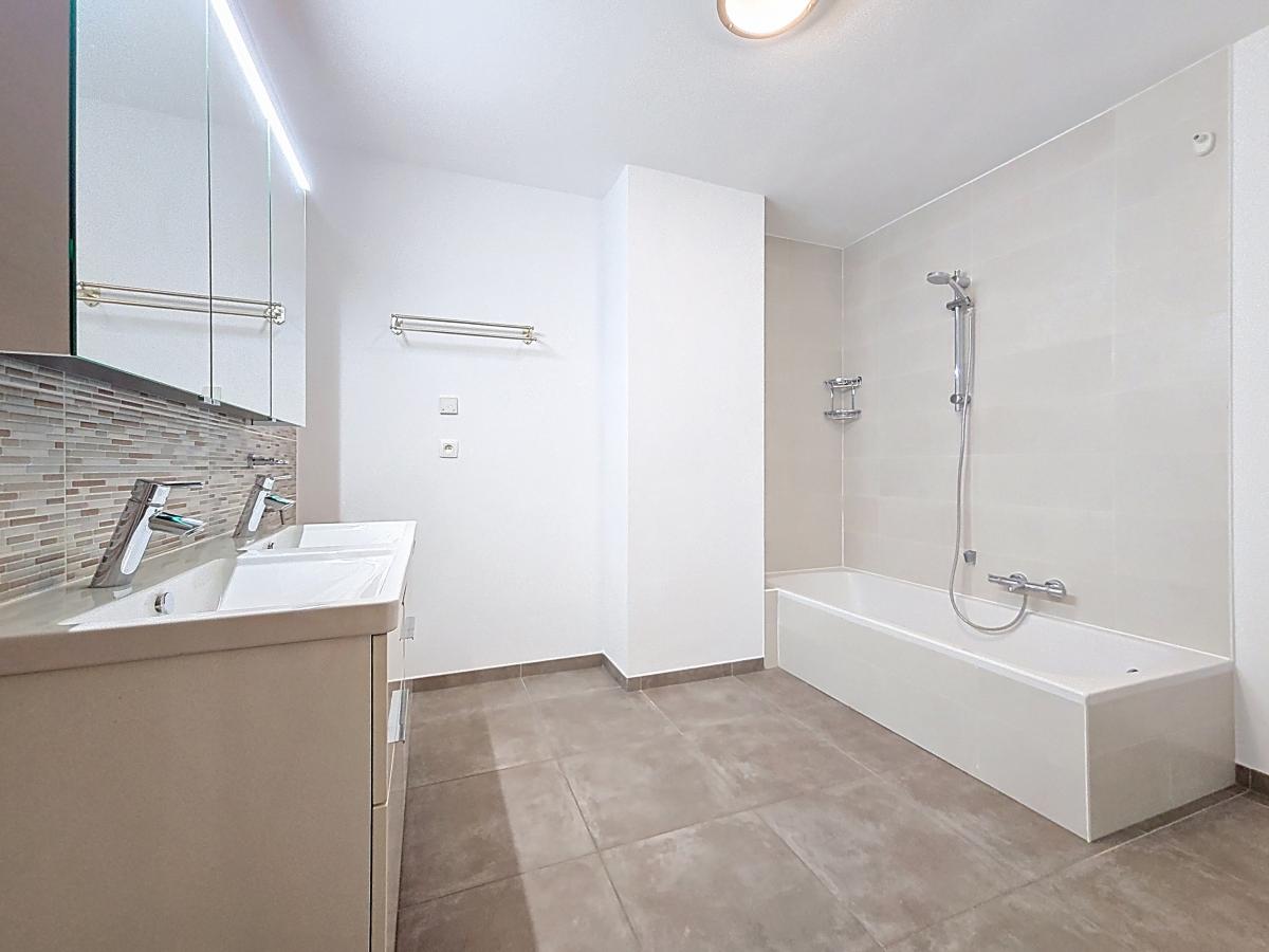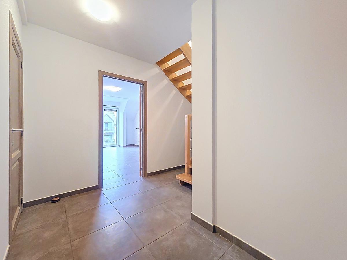 Situé à Marcq, aux portes de la Ville d’Enghien, ce très beau duplex fraîchement repeint vous séduira par ses nombreux atouts. Situé au 2ème étage d’une Résidence construite en 2016, il offre, en son 1er niveau, un grand hall d’entrée (avec un espace permettant d’accueillir aisément une armoire/vestiaire), un WC, un spacieux séjour avec cuisine ouverte et ilot central, et une buanderie. Le 2ème niveau est doté d’un hall de nuit, de 2 chambres, d’une salle de bains, et d’un WC. Un balcon privé (avec prise et luminaire extérieurs) et un jardin commun derrière l’immeuble viennent compléter ce beau programme. Bonne performance énergétique (PEB en B), chauffage par le sol, double vitrage, système de ventilation, luminaires installés … bref, un nid douillet tout confort ! Le bien jouit de la proximité des commodités : gare d’Enghien à +/-2.7km (train direct vers Bruxelles en +/-20min), autoroute E429 à +/-1km (Bruxelles, Tournai, Lille), arrêt de bus à quelques mètres, nombreuses écoles et commerces à quelques minutes à pied. Loyer : 950€/mois + provision de 200€/mois comprenant les charges communes (nettoyage des communs, entretien et réparation courantes, entretien jardin et abords, frais d’ascenseur, électricité des communs, eau des communs), le chauffage de l’appartement, et le chauffage de l’eau de l’appartement. Possibilité de louer en sus un emplacement de parking intérieur privatif au sous-sol de la résidence (50€/mois).