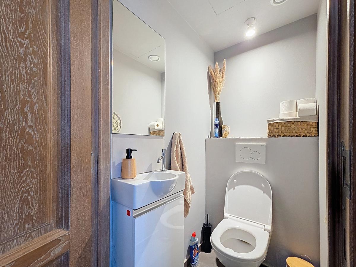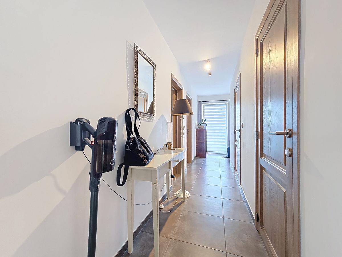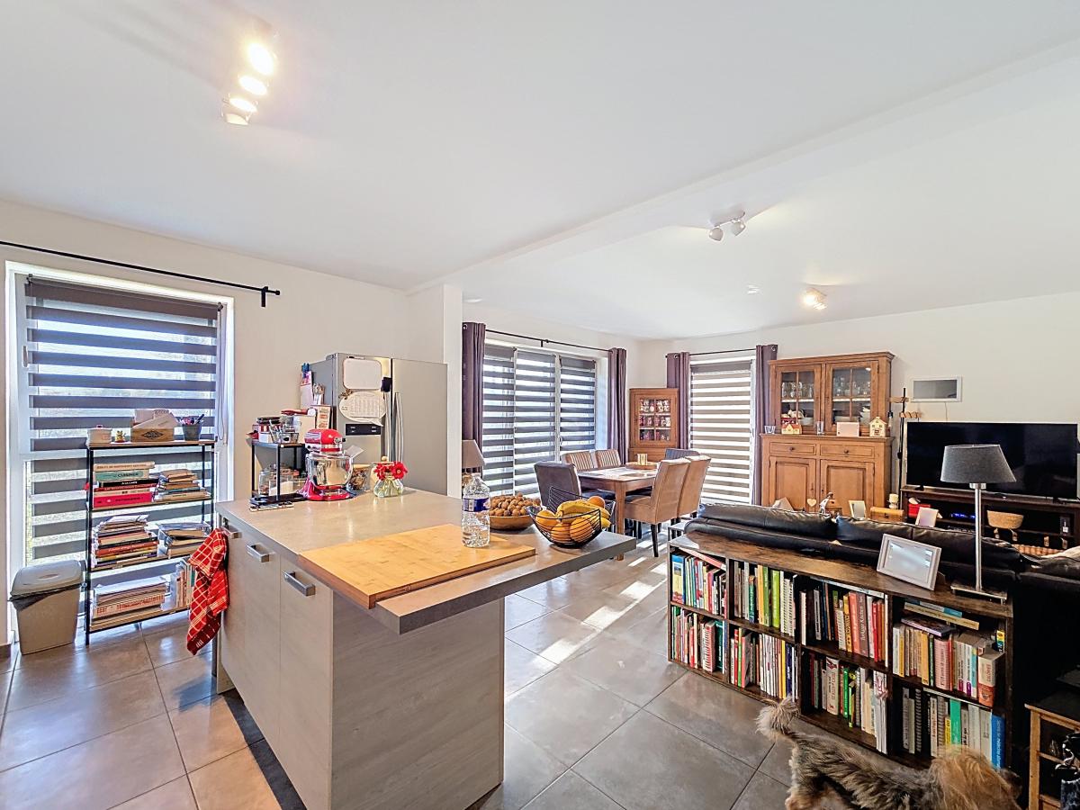 Hall d’entrée de +/-6.9m² Séjour (avec cuisine ouverte) de +/-35m² Couloir de +/-7.4m² Buanderie de +/-2.6m² WC de +/-1.2m² Salle de bains de +/-5.4m² Chambre 1 de +/-13.8m² Chambre 2 de +/-11m²