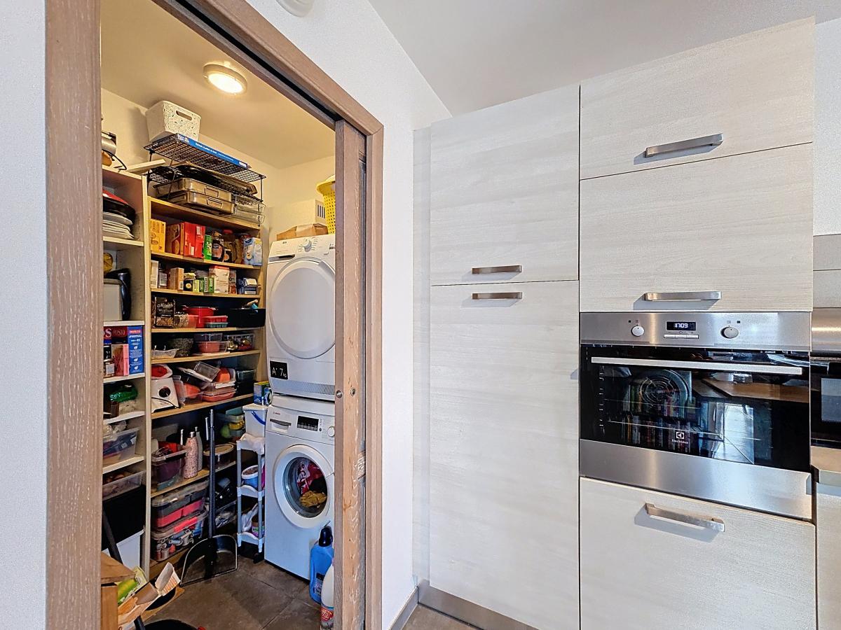 Buanderie avec porte coulissante et raccordement pour machine à laver