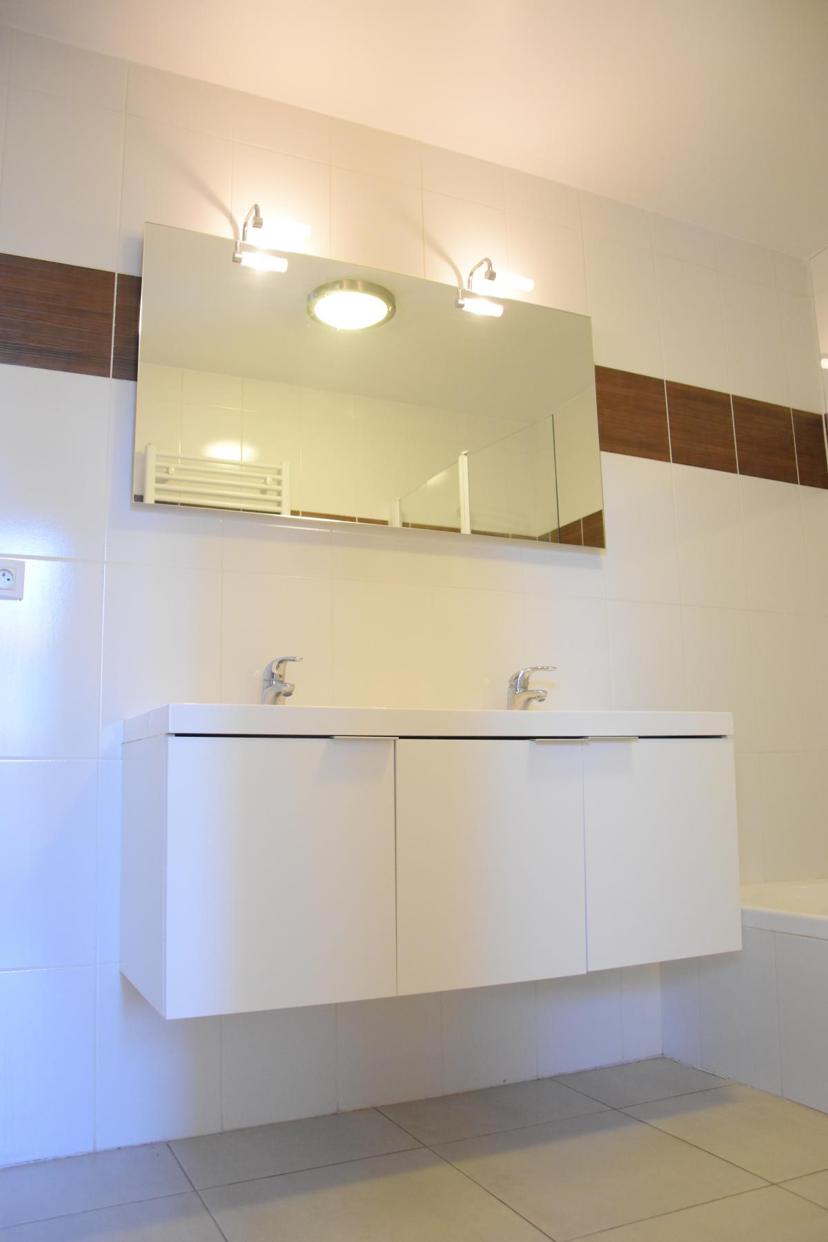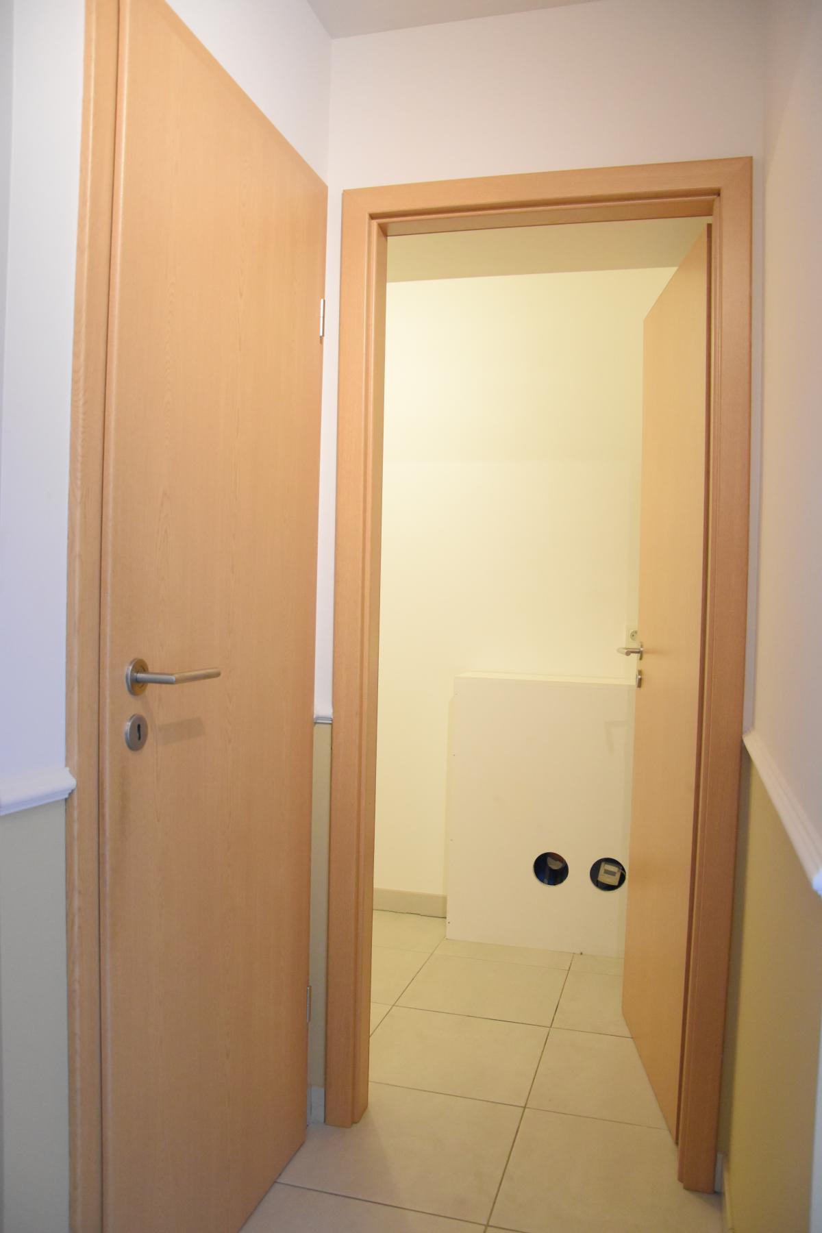 Construction de 2011 PEB en C Système de chauffage central Production d’eau chaude sanitaire par la chaudière Thermostat d’ambiance Compteur électrique bi-horaire Système de parlophonie Porte blindée Porte de verre menant du hall au séjour WC avec lave-mains Système de ventilation Equipements cuisine : frigo, congélateur, lave-vaisselle, four, emplacement micro-ondes, évier, égouttoir, taque vitrocéramique, hotte Revêtements des sols : carrelage dans tout l’appartement à l’exception des chambres (parquet flottant) Equipements salle de bains : double évier (meuble, luminaires, miroir), bain-douche, radiateur porte-serviettes Buanderie séparée avec raccord pour la machine à laver