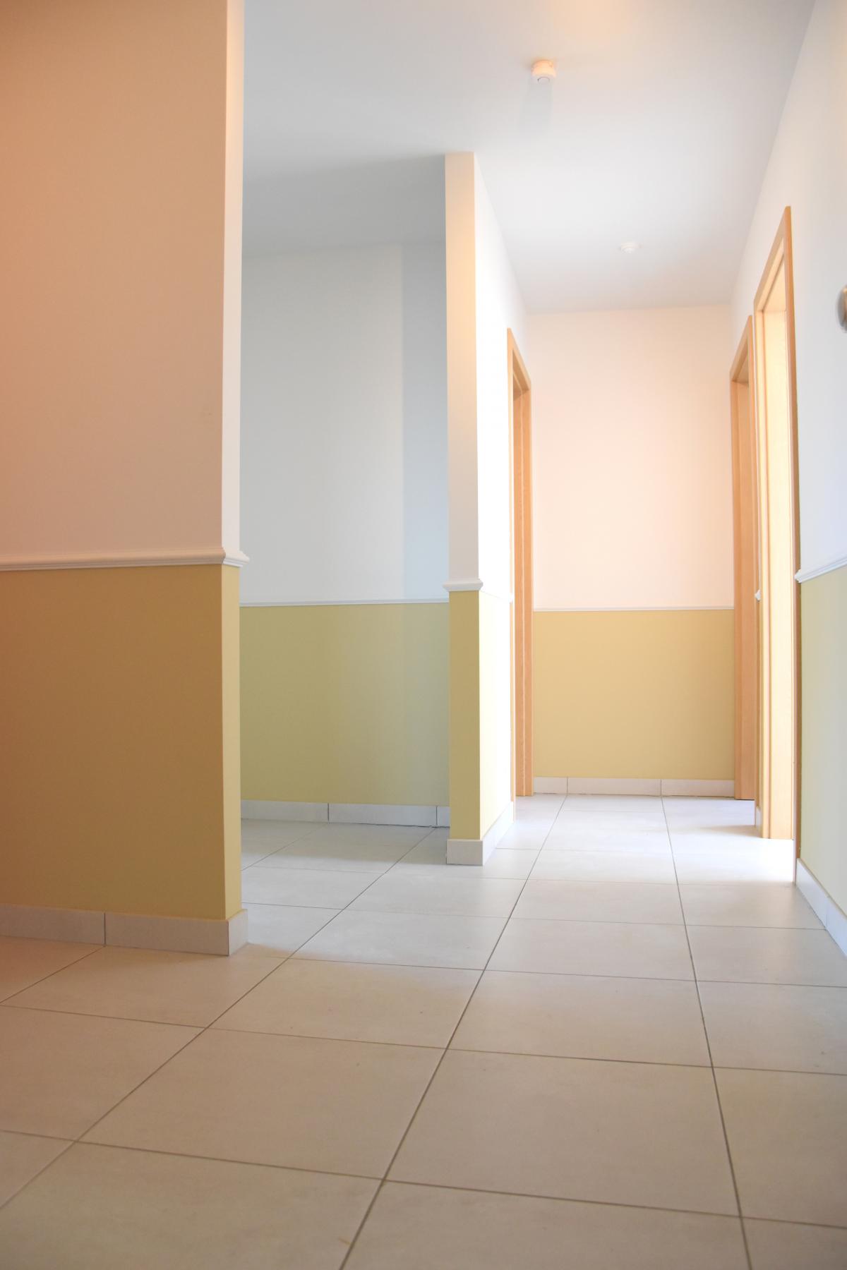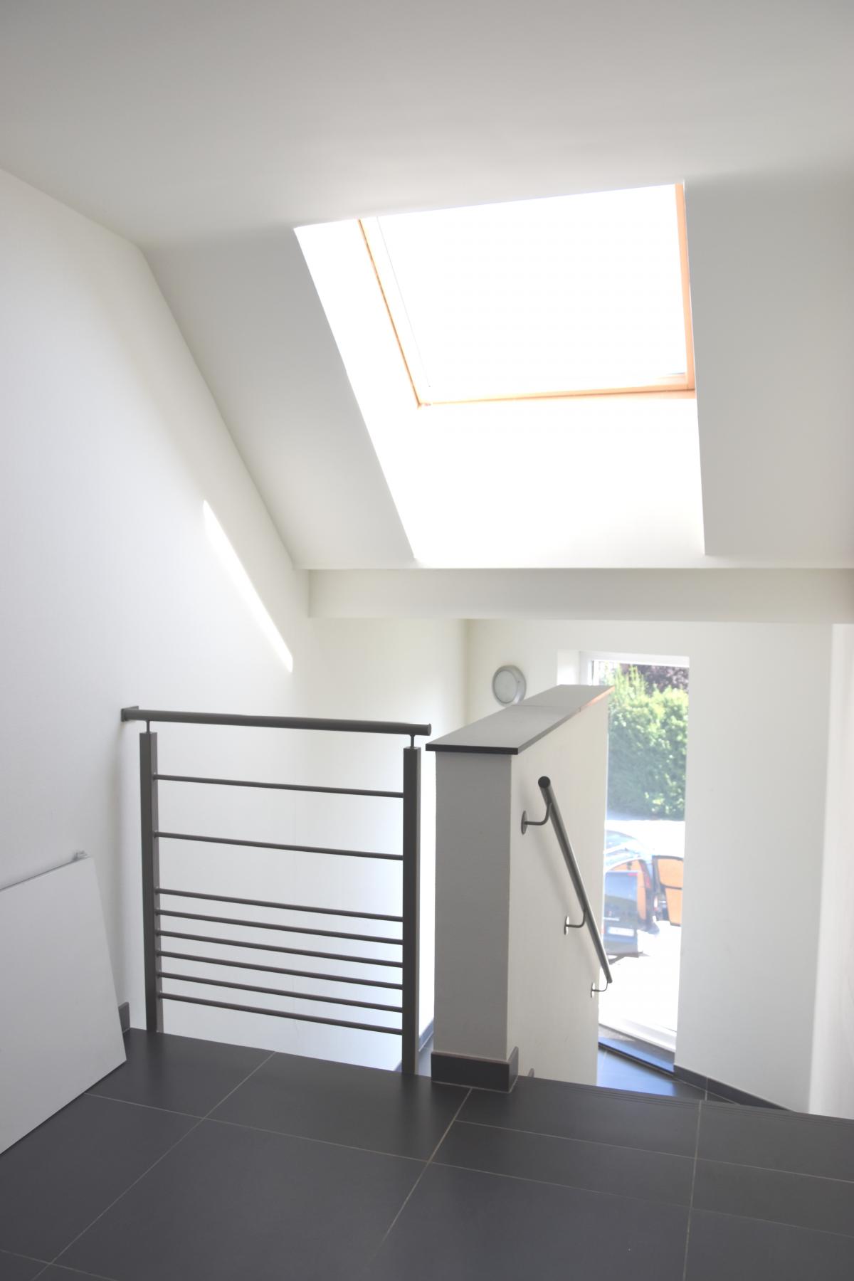 Hall de +/-9m² Séjour de +/-37.5m² avec cuisine ouverte Chambre 1 de +/-13.5m² Chambre 2 de +/-11m² Salle de bains de +/-5m² WC de +/-1.5m² Buanderie de +/-3.5m²