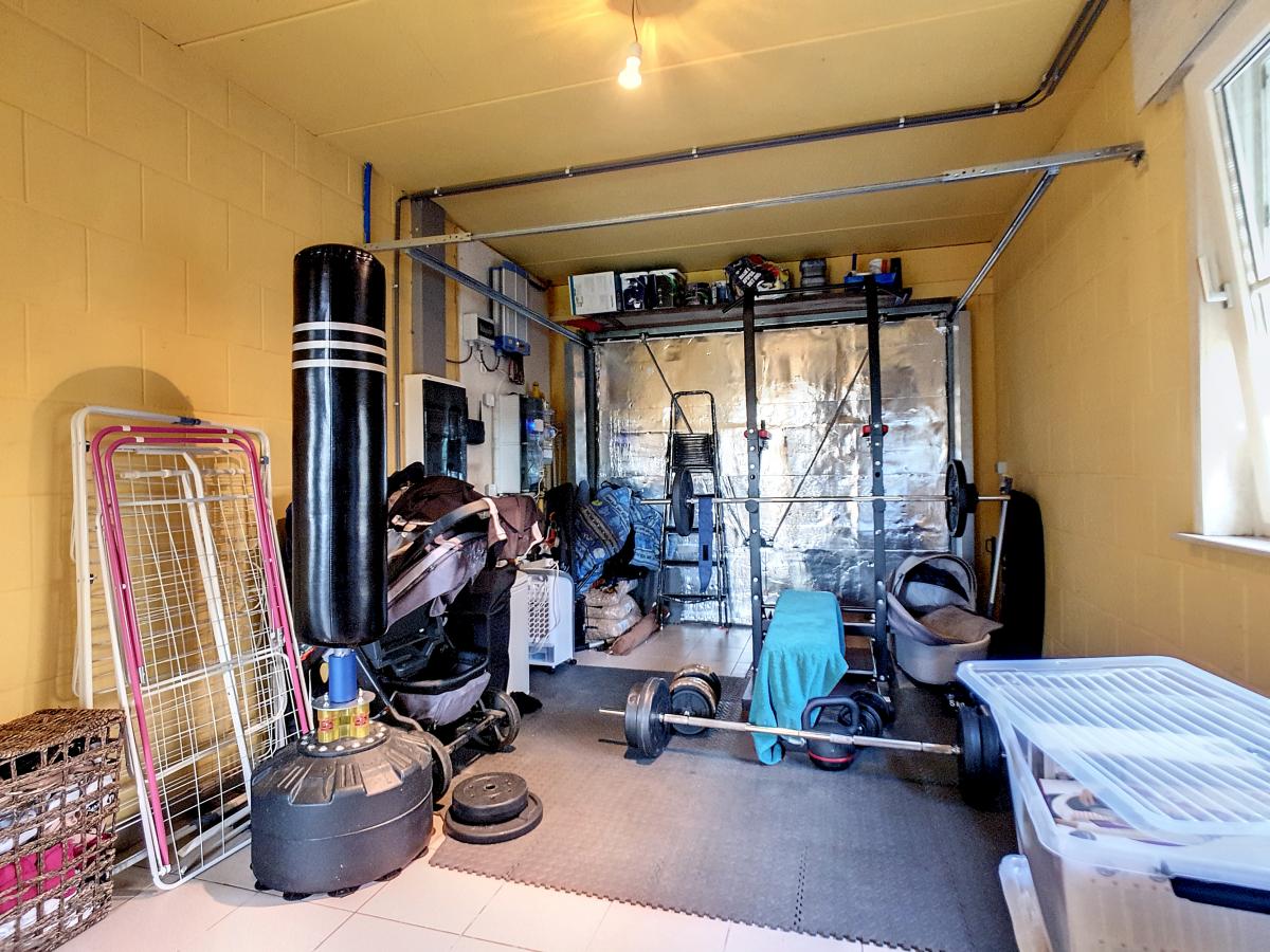 Évier de service dans le garage Adoucisseur (dans le garage) Raccordement machine à laver dans la buanderie Citerne d’eau de pluie de +/-10 000 litres avec groupe hydrophore