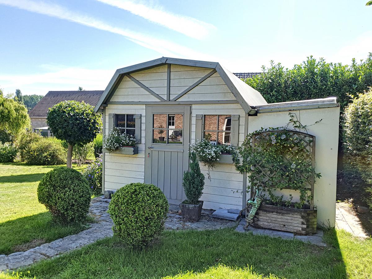 Emplacements de parking extérieurs (devant le garage + allée latérale) Jardin clôturé Terrasse Chalet de jardin