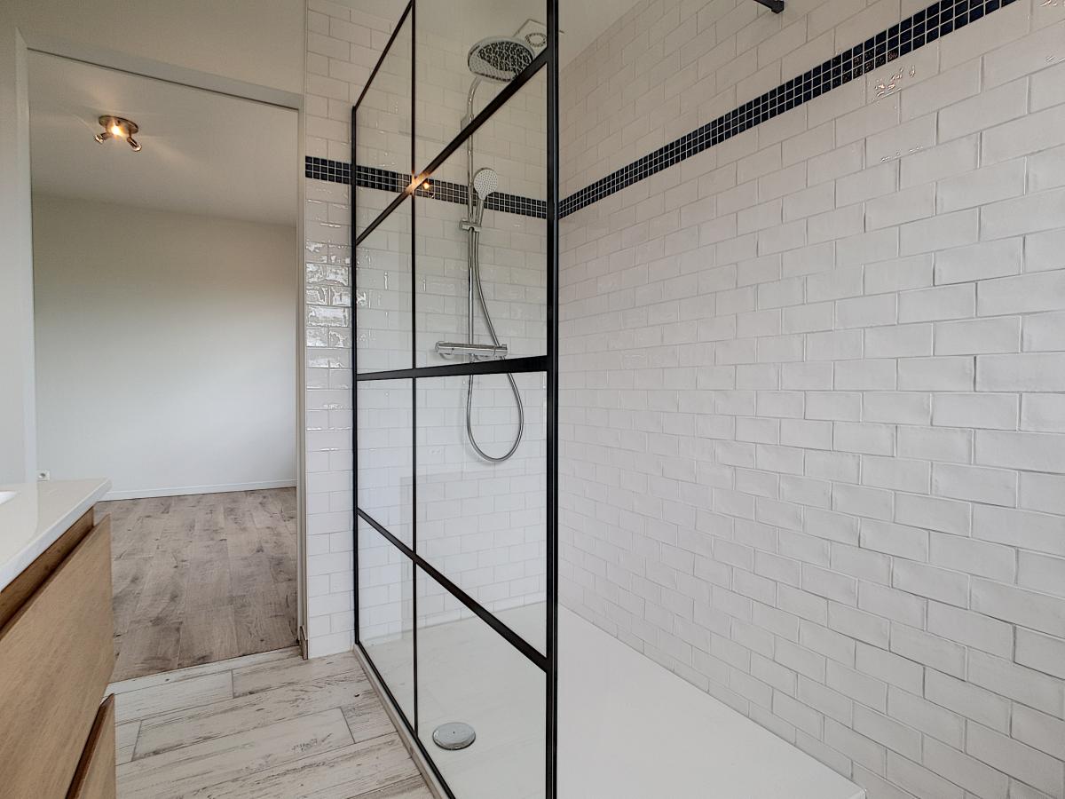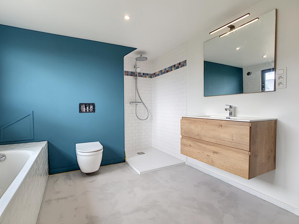 Équipements salle d’eau chambre 1 : douche, meuble-évier Équipements salle d’eau chambre 2 : douche italienne, meuble-évier (double lavabo), WC suspendu Équipements salle d’eau du 1er étage : bain, WC suspendu, douche, meuble-évier