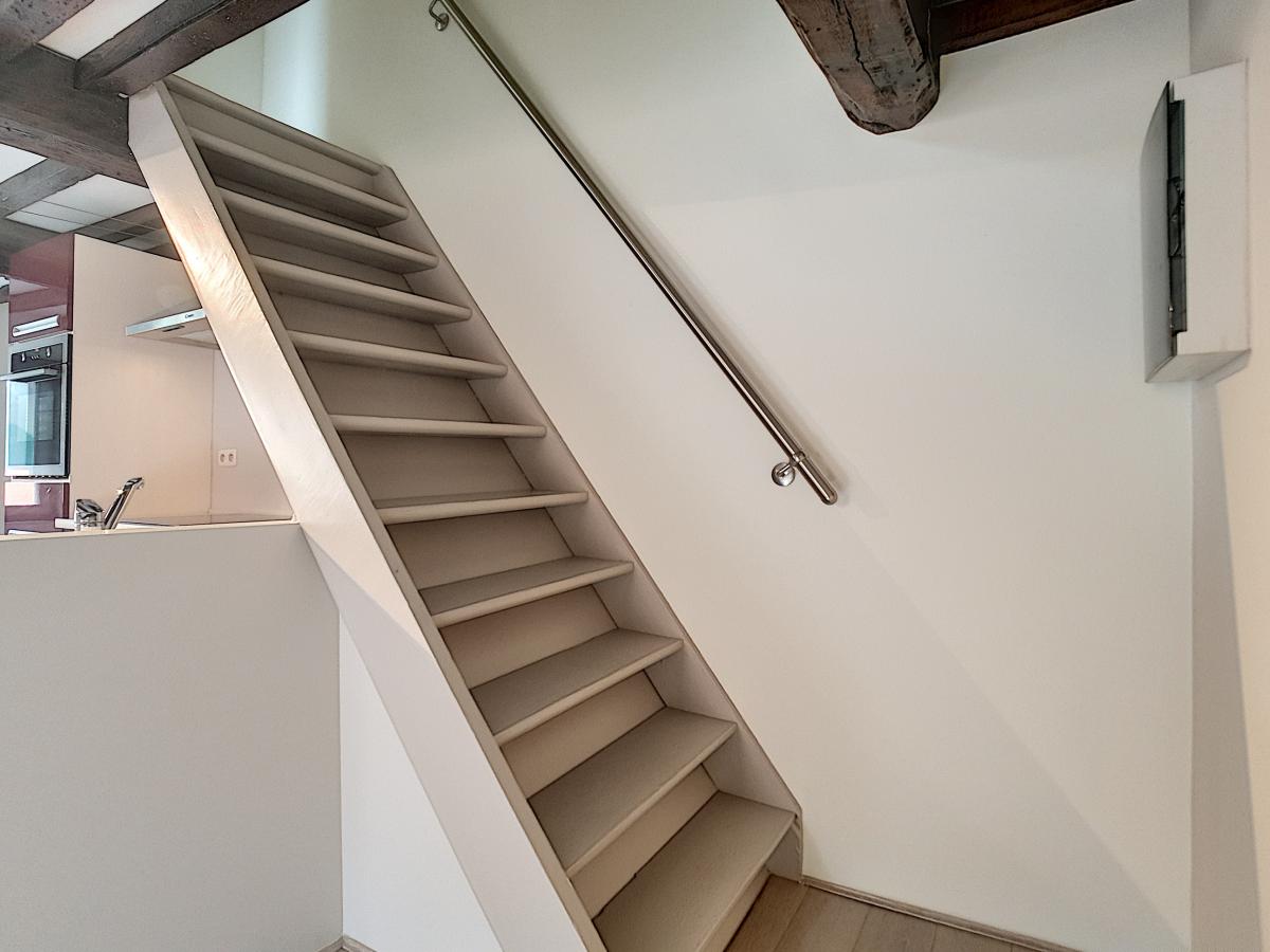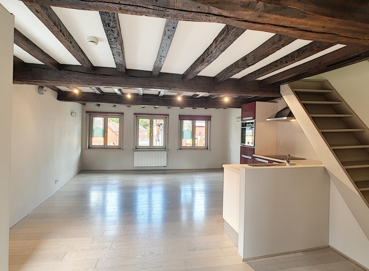 Très bel appartement duplex 2 chambres situé en plein centre d’Ath, à moins de 100m de la Grand’Place. D’une superficie de +/-67m² habitables, cet agréable logement se compose d’un séjour de +/-33m² avec cuisine ouverte, et d’une salle d’eau (avec douche, meuble-évier et WC suspendu). L’étage du duplex se compose d’un petit hall de nuit et de 2 chambres. Cave privative au sous-sol de l’immeuble. Loyer : 650€/mois + 15€/mois de forfait pour l’électricité des communs. Doté d’une localisation idéale, ce petit nid douillet vous permet d’accéder aisément à toutes les commodités, et de tout faire à pied ! Gare d’Ath à +/-1.1km (train direct vers Bruxelles en +/-40min et train direct vers Tournai en +/-22min), autoroute A8/E429 à +/-5.7km (Bruxelles-Tournai-Lille), nombreux commerces et écoles à proximité. Marché hebdomadaire le jeudi en centre-ville ! En outre, l’Esplanade se trouvant à environ 350m, vous pourrez tranquillement profiter du bon air à travers ce très bel espace vert à la fois ludique, sportif, et convivial, mais également très romantique grâce à son parc joliment agrémenté. Ath, une ville très dynamique qui vous ravira par son folklore local, la convivialité de ses aménagements urbains, et les jolis décors végétaux la garnissant à la belle saison. Un simple rayon de soleil suffit à remplir les terrasses ! Vous vous y sentirez bien…