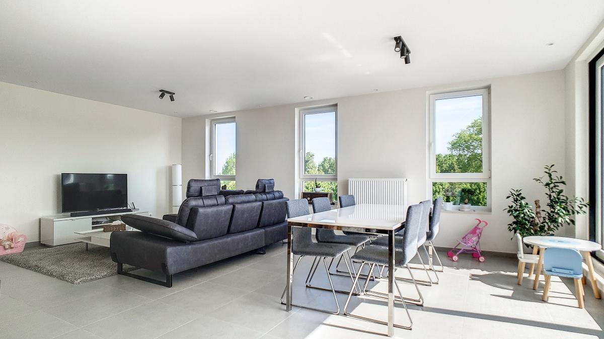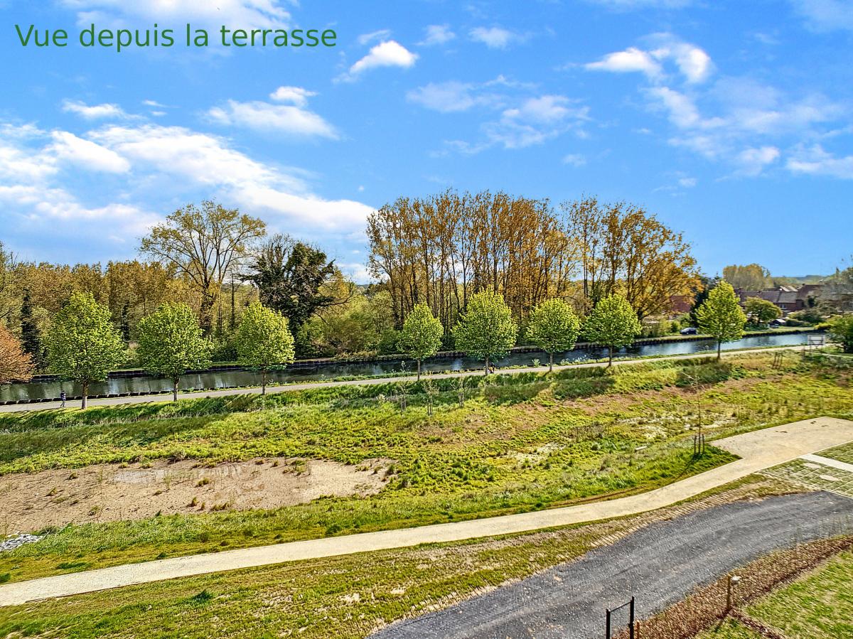 Niché au sein d’un grand parc paysager, dans un nouveau quartier récemment érigé sur le sol Athois, ce penthouse hors du commun vous séduira par sa spacieuse terrasse de 36m² offrant une vue magnifique sur le canal Blaton-Ath et son splendide cadre de verdure. Localisé au 3ème étage de la Résidence « Le Vaisseau », cet appartement de 96m² vous offre un hall de +/-10.8m², un séjour avec cuisine ouverte de +/-38.6m², une buanderie, 2 chambres de +/-18.2 et 13.6m², une salle d’eau agrémentée d’une belle douche italienne, et un WC séparé. Construction de 2021. Excellente performance énergétique (PEB : A), système de chauffage central au gaz, ventilation double flux, kot de rangement extérieur, cave privative, emplacement de parking intérieur privatif, bref, un logement tout confort ! Loyer : 1 100€/mois + provisions pour charges communes de 130€/mois (comprenant contrôles périodiques, entretien du bâtiment, ascenseur, banque, divers, énergies, et syndic pour ½). Gare d’Ath à +/-1.6km à pied (train direct vers Bruxelles en +/-40min), autoroute E429 à +/-7.7km (Bruxelles-Tournai-Lille), Grand’Place d’Ath à +/-2km à pied (restaurants, magasins, marché hebdomadaire le jeudi), et nombreux commerces à moins d’un 1km (sur la Chaussée de Mons). La situation idéale de cet appartement vous permettra de profiter du cadre magique du canal Blaton-Ath, itinéraire privilégié pour les joggeurs et amateurs de balades. Visite virtuelle sur demande.