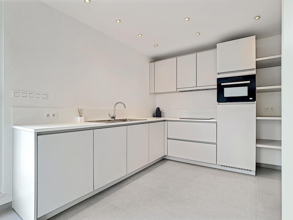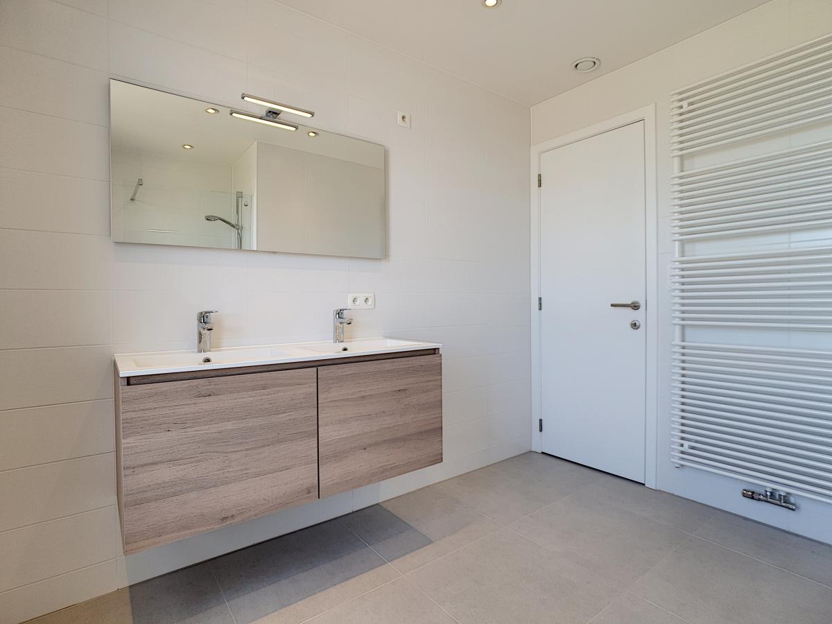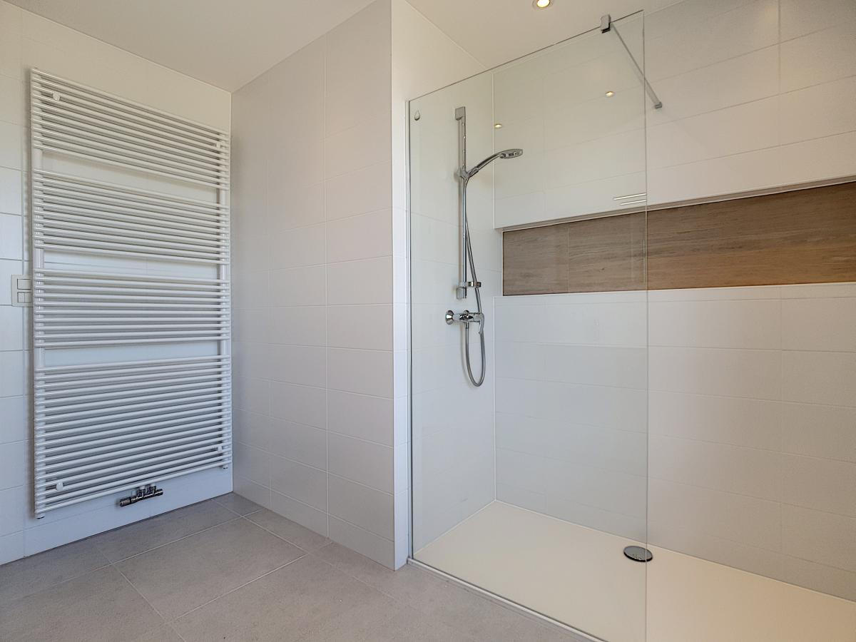 Équipements salle d’eau : douche italienne, double meuble-évier, miroir avec luminaire intégré, radiateur porte-serviettes Équipements cuisine : plan de travail, évier, égouttoir, lave-vaisselle, taque vitrocéramique, hotte, frigo, four combiné avec micro-ondes