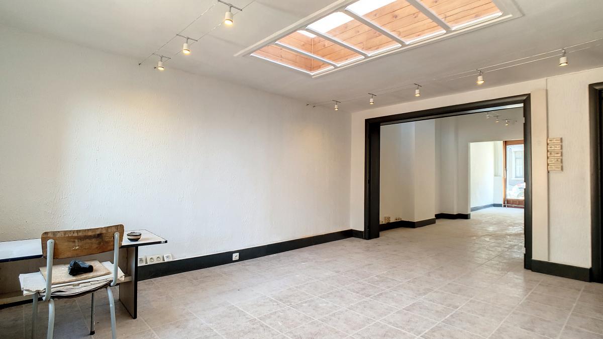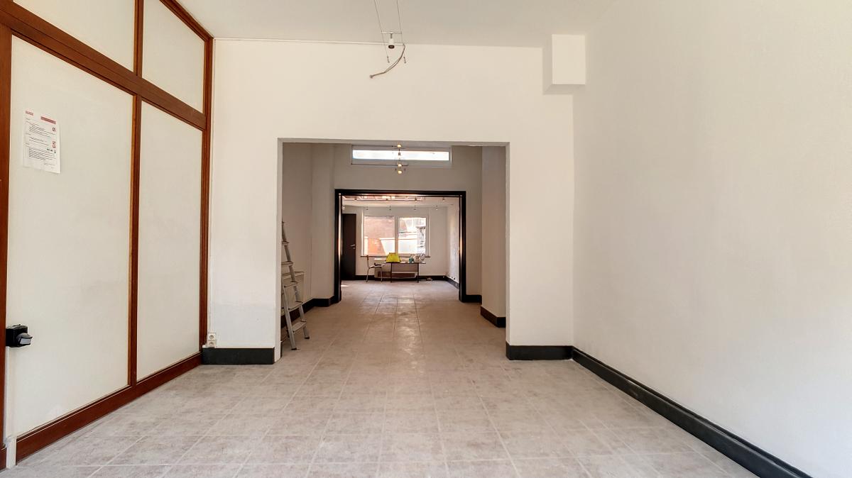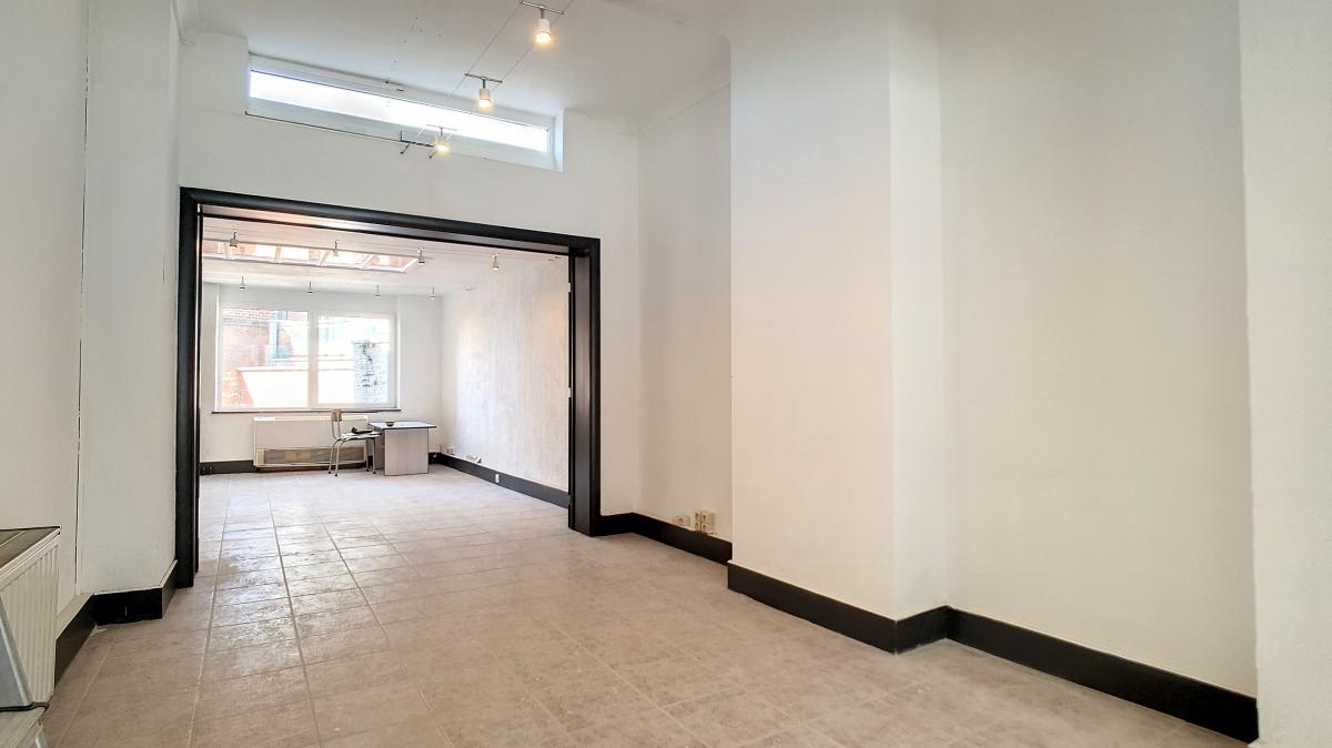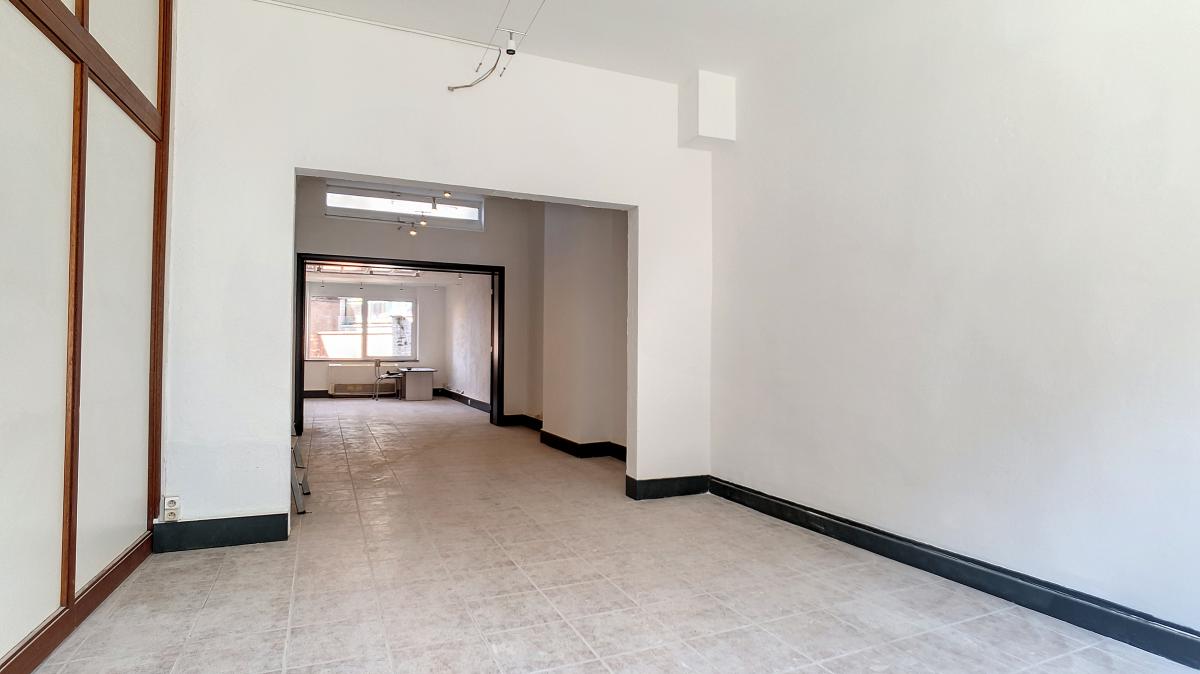 Surface commerciale ou de bureau de +/-58m² située dans le centre d’Enghien, avec en outre une grande cave au sous-sol de +/-74m² (idéale pour du stockage), et une petite cour arrière extérieure. Composition du commerce / bureau : pièce 1 (avec grande baie vitrée donnant sur la rue) de +/-16.5m², pièce 2 (ouverte sur la pièce 1) de +/-12.3m², pièce 3 (ouverte sur la pièce 2) de +/-19.2m², salle d'eau de +/-3m² (dont wc), sas de +/-0.8m², débarras de +/-0.6m², cuisine de +/-5.3m². Au sous-sol : grande cave privative de +/-74m². Cour extérieure privative, sur 2 niveaux, accessible via la cuisine ou via le sous-sol. Gare d’Enghien à +/-400m à pied (train direct vers Bruxelles en +/-20min), autoroute A8/E429 à +/-2.5km (Bruxelles, Tournai, Lille), Grand’Place d’Enghien à +/-270m à pied (marché hebdomadaire le mercredi, restaurants, bureau de poste, banque, salon de coiffure, fleuriste, commerces, etc.), Ecole Albert Ier à +/-80m à pied, Place du Vieux Marché à +/-20m, Parc d’Enghien à +/-350m à pied, bref… une belle localisation avec énormément de passage ! Loyer : 790€/mois + 30 €/mois de provision pour la consommation en eau.