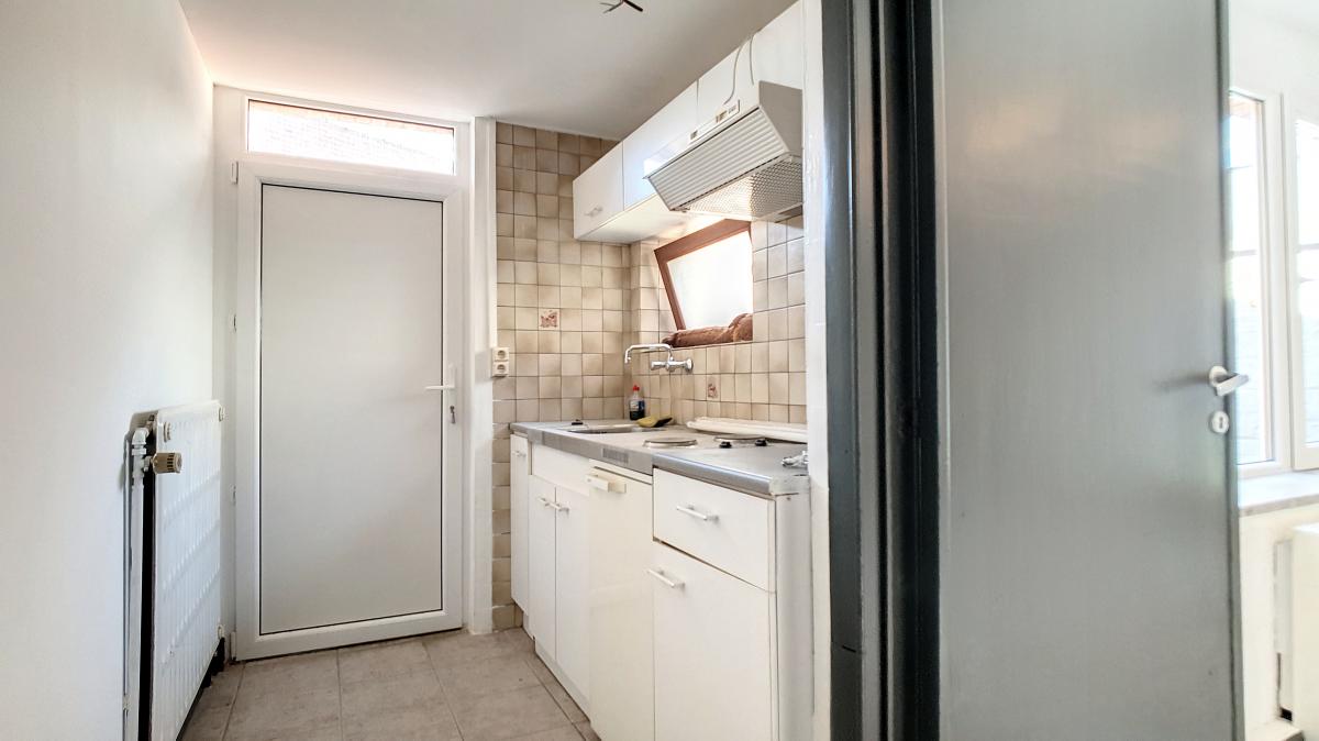 Pièce 1 (donnant sur la rue) de +/-16.5m² Pièce 2 (ouverte sur la pièce 1) de +/-12.3m² Pièce 3 (ouverte sur la pièce 2) de +/-19.2m² Salle d’eau de +/-3m² Sas de +/-0.8m² Débarras de +/-0.6m² Cuisine de +/-5.3m²