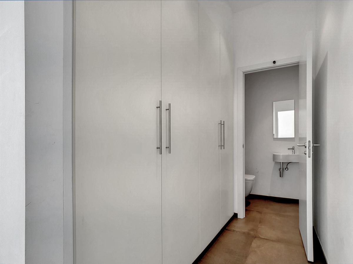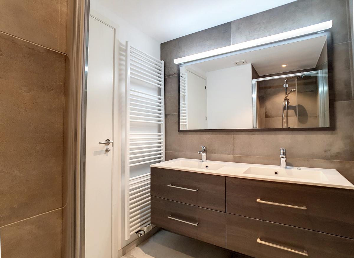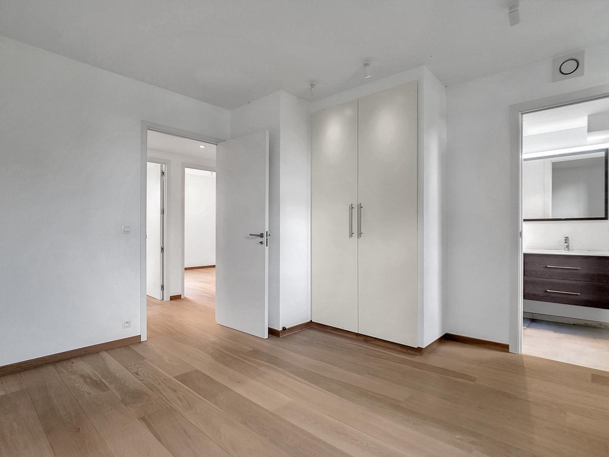 Nombreuses armoires encastrées Hall d’entrée avec placard technique accueillant notamment le tableau des fusibles Buanderie avec raccord pour une machine à laver, bloc du système de ventilation 2 toilettes séparées avec WC suspendus et lave-mains Porte coulissante entre le hall d’entrée et la salle à manger Porte coulissante entre la salle à manger et le salon Salle de bains accessible via une des chambres Rails déjà installés aux fenêtres