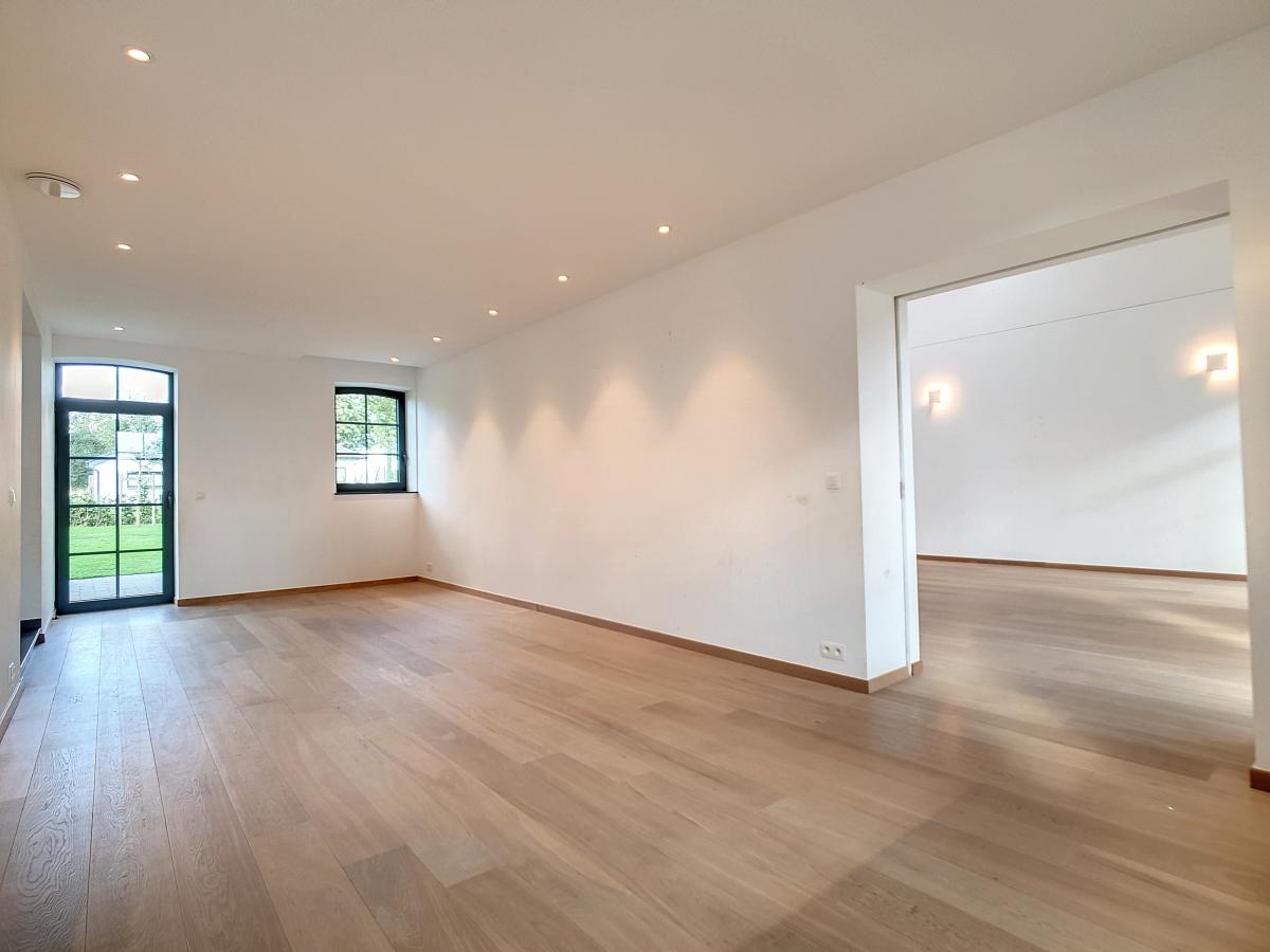 Hall d’entrée de +/-6.7m² Cuisine de +/-17.5m² Buanderie de +/-5.9m² Couloir de +/-2.6m² + grands placards encastrés WC de +/-1.4m² Bureau de +/-7m² + grands placards encastrés Salle à manger de +/-29m² Salon de +/-44.6m²
