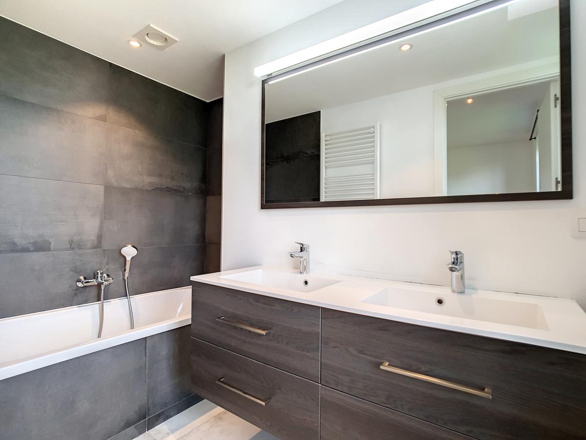 Équipements cuisine : 2 éviers, frigo Siemens, petit congélateur, four Siemens, micro-ondes Siemens, taque vitrocéramique Siemens, hotte Novy, lave-vaisselle Siemens Équipements salle de bains : bain, meuble avec double évier, miroir avec luminaire, radiateur porte-serviettes Équipements salle de douche : douche, meuble avec double évier, miroir avec luminaire, radiateur porte-serviettes