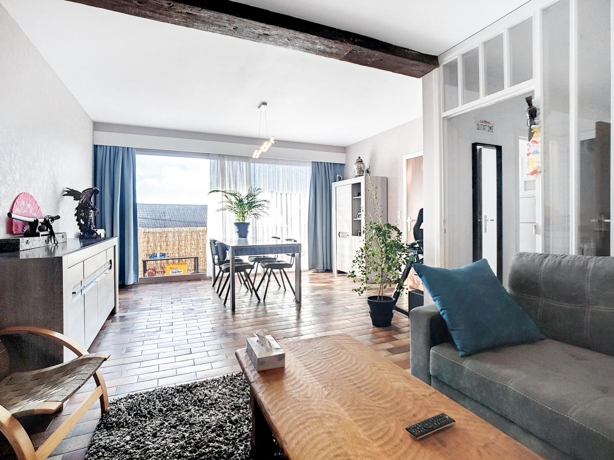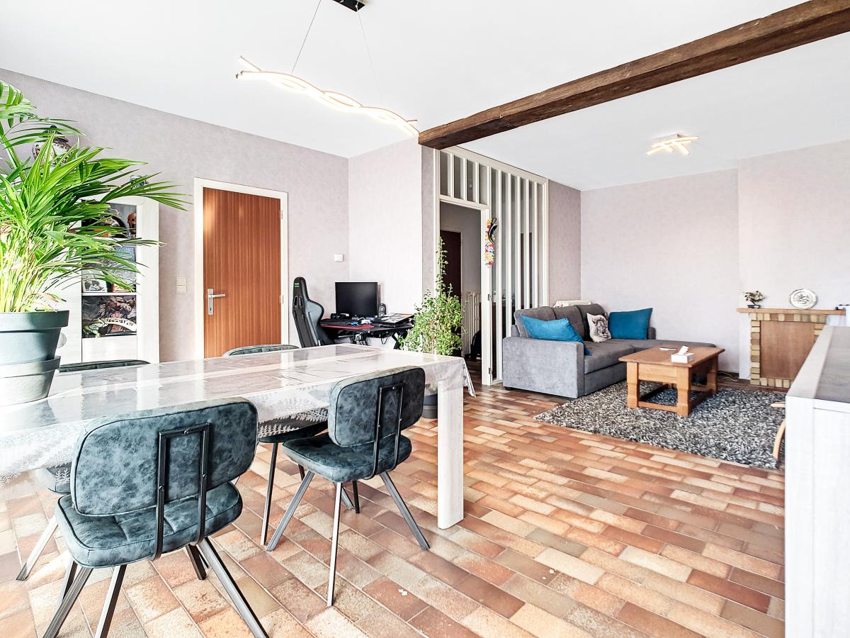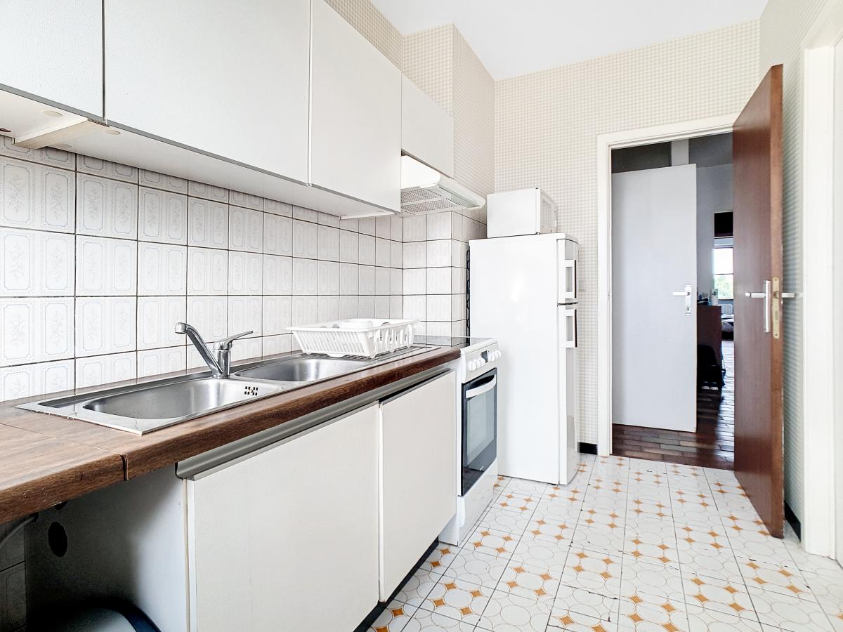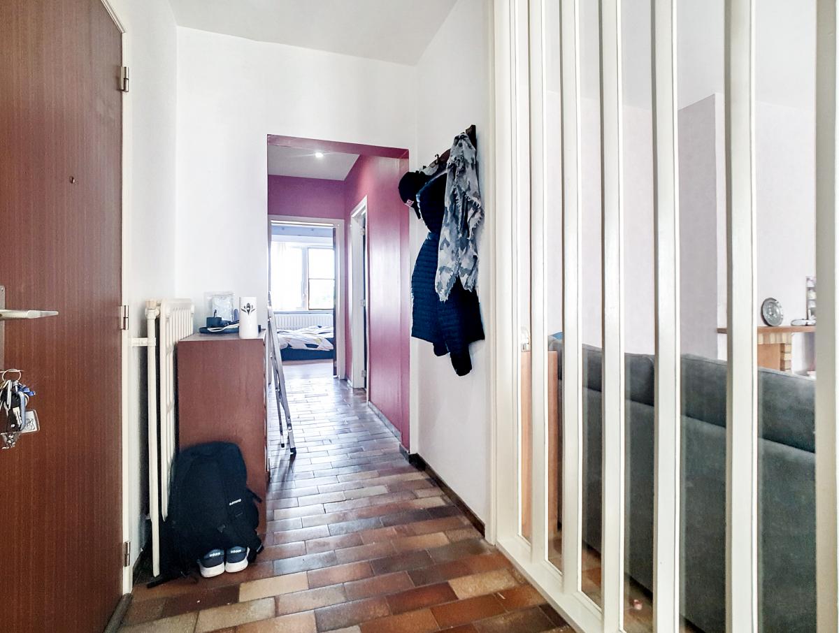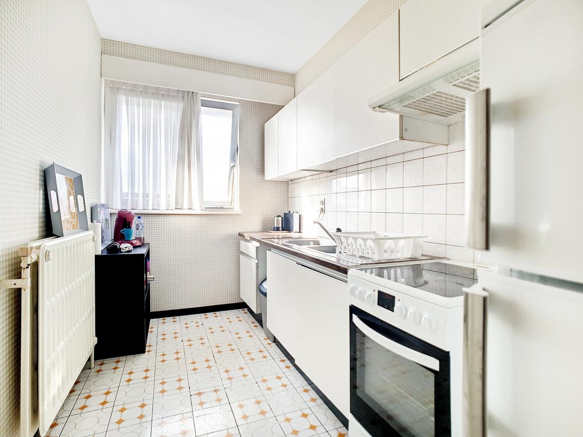 Surface de +/-74m² Living avec balcon orienté ouest Chambres orientées est (dont une avec petit balcon) Châssis double vitrage Salle d’eau avec évier et bain-douche Cave privative au sous-sol de la résidence Garage fermé privatif pour l’appartement à l’arrière de la résidence