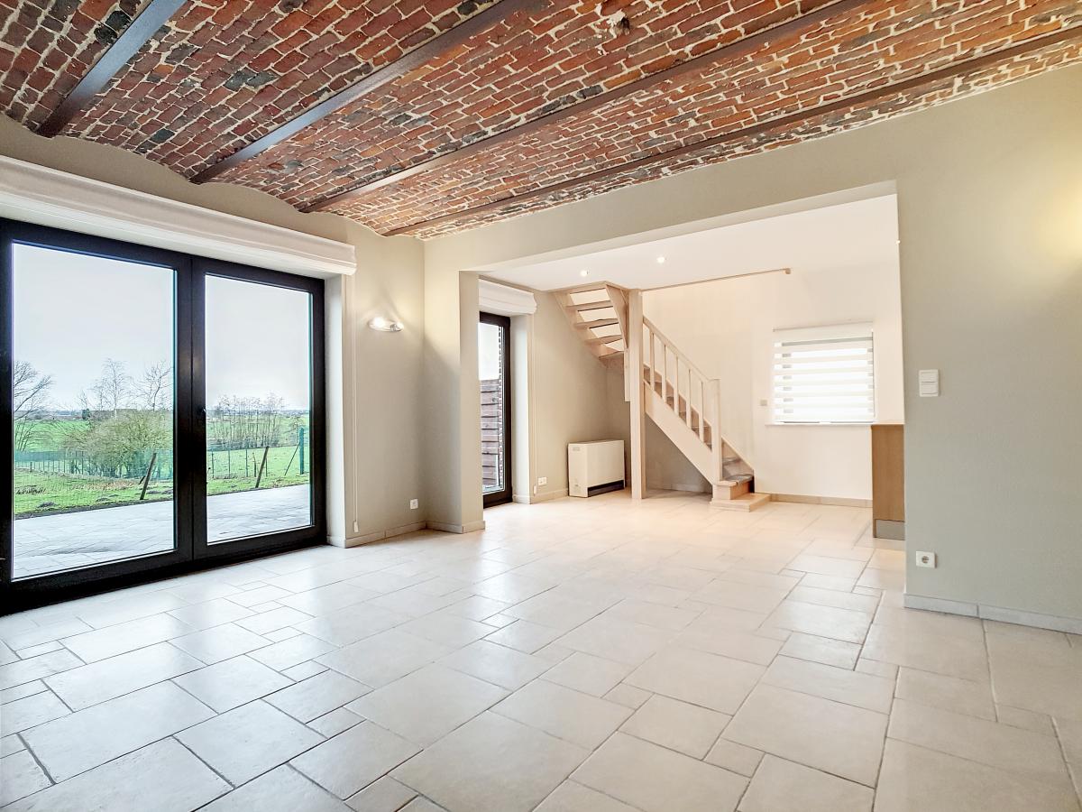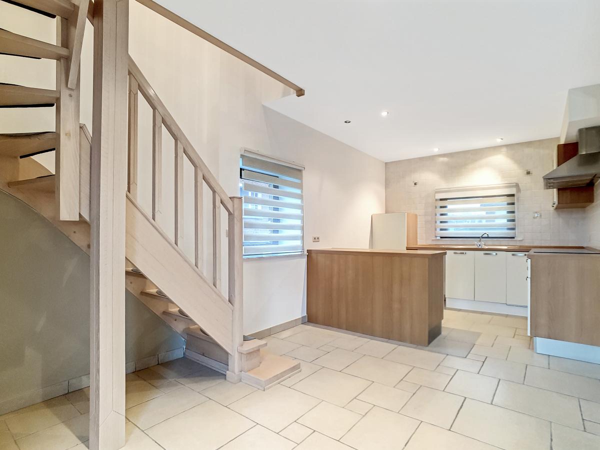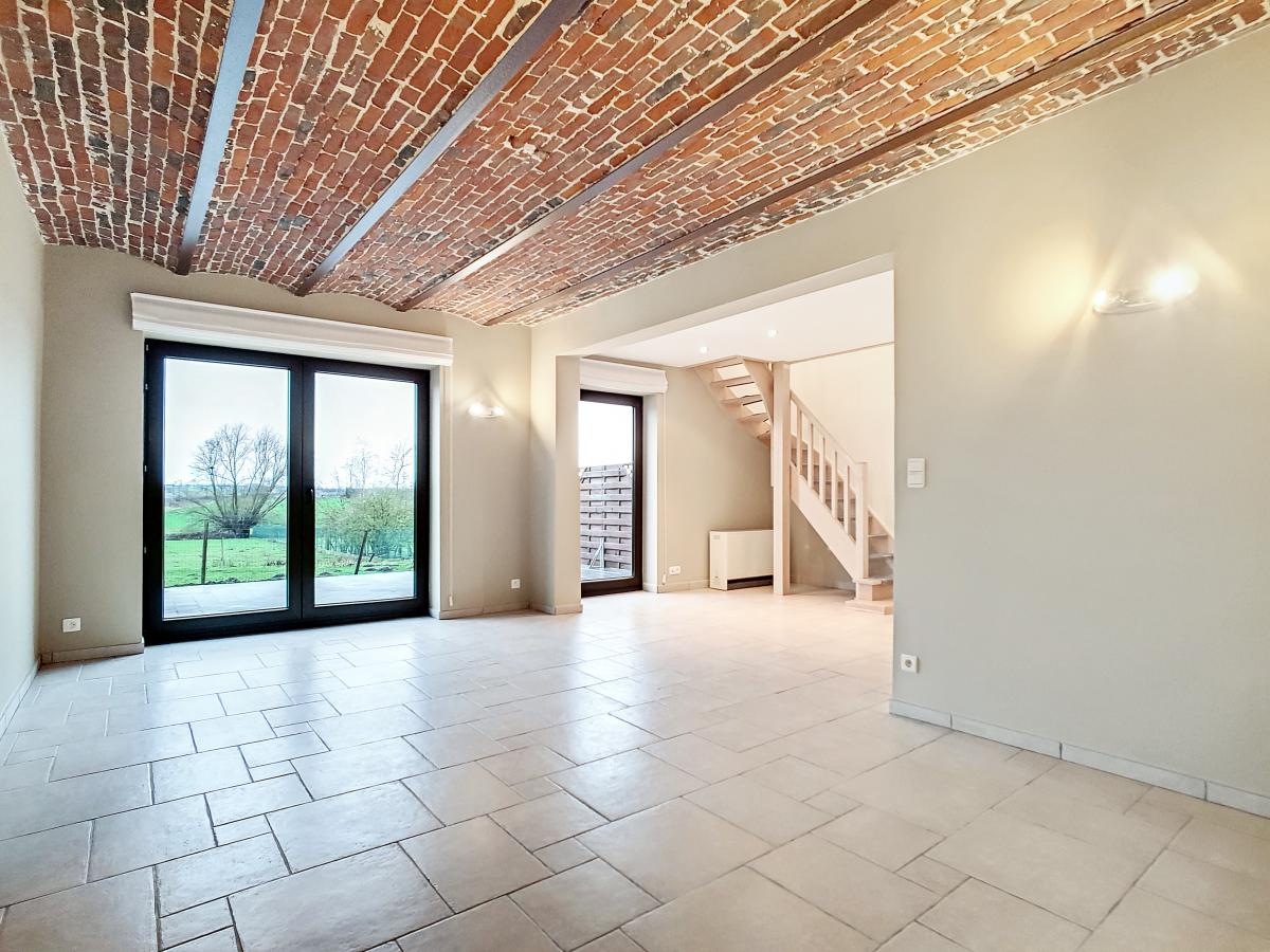 Située dans la magnifique entité de Silly, et plus précisément dans le charmant village de Bassilly, dans une petite rue en cul-de-sac, cette partie d’une ancienne ferme en « U » vous offre, en son rez-de-chaussée, un hall d’entrée, un WC séparé, une buanderie de +/-6.3m², et un séjour de +/-37.2m² (en 2 parties) avec cuisine ouverte. Le 1er étage se compose d’un hall de nuit, d’une salle d’eau (avec bain-douche, meuble double évier, WC, radiateur porte-serviettes), et de 2 chambres à coucher (de +/-9.6 et 12.8m²). Terrasse privative de +/-50m² orientée sud-ouest. Garage fermé privatif. Chauffage électrique (accumulateurs et radiateurs électriques), châssis PVC double vitrage. Loyer : 750€/mois. Gare de Silly à +/-1.8km (train direct vers Bruxelles en +/-30min), autoroute A8/E429 à +/-2.9km (Bruxelles, Tournai, Lille), arrêt de bus à +/-250m, épicerie à +/-1.1km, école communale à +/-1.4km, école secondaire à +/-6.3km, grandes surfaces à environ 6km.