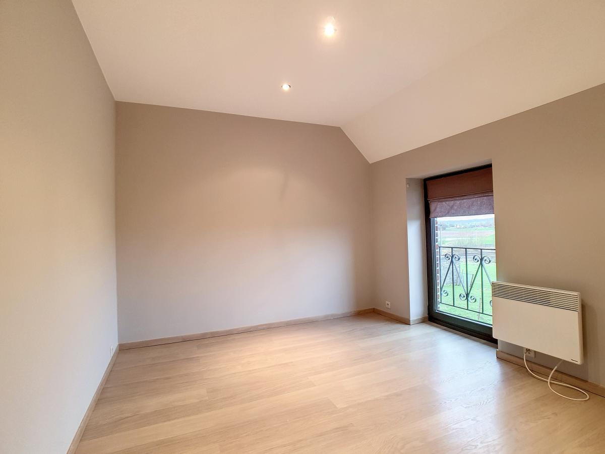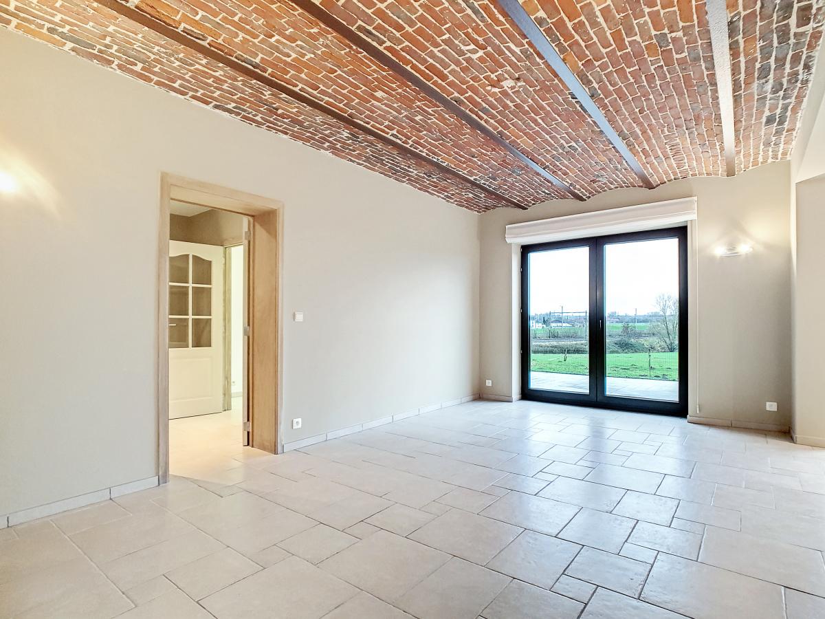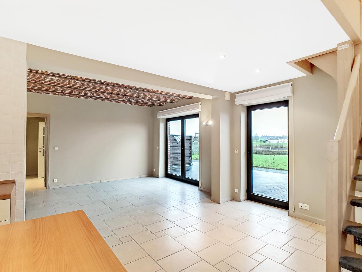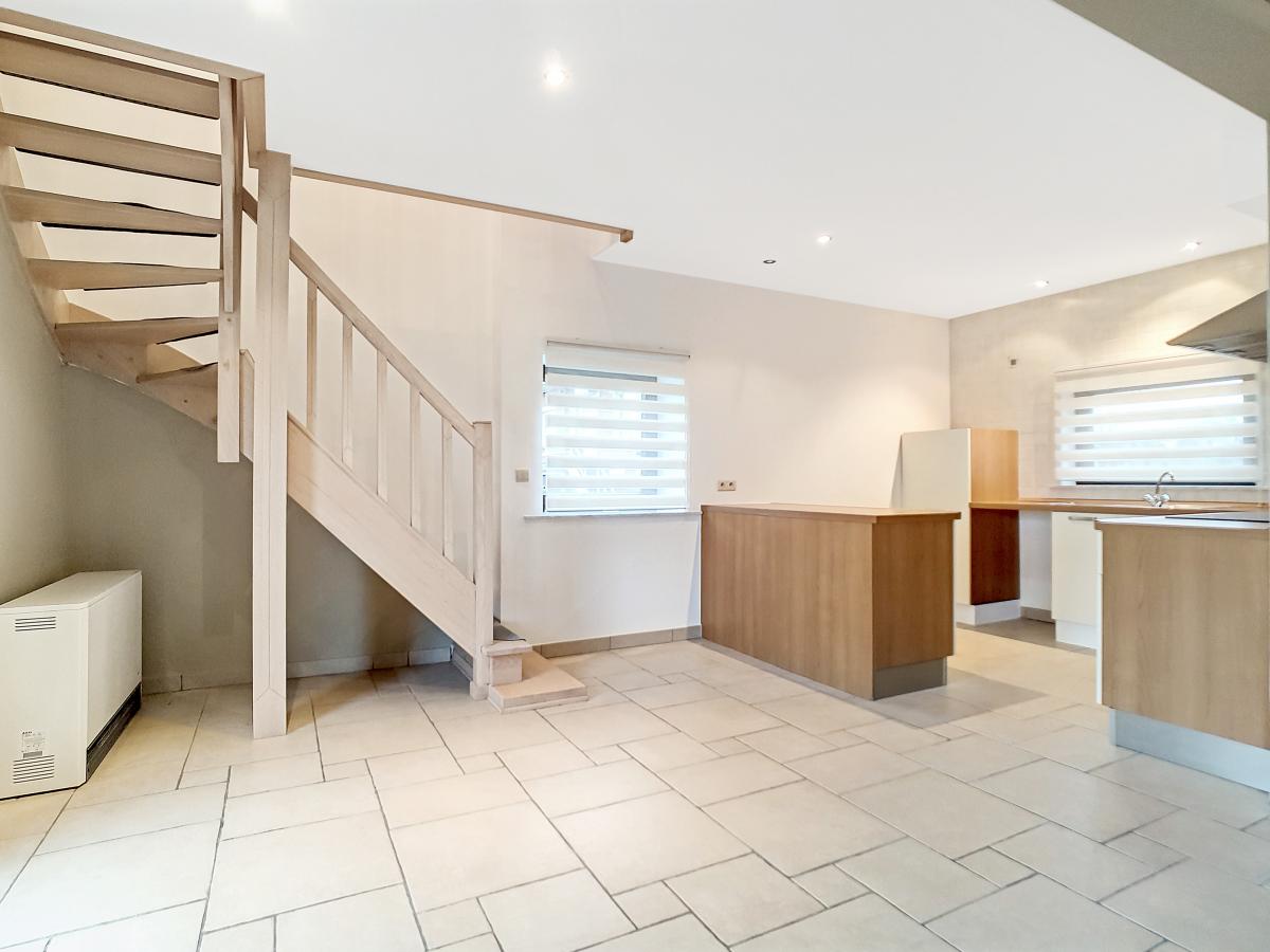 Située dans la magnifique entité de Silly, et plus précisément dans le charmant village de Bassilly, dans une petite rue en cul-de-sac, cette partie d’une ancienne ferme en « U » vous offre, en son rez-de-chaussée, un hall d’entrée, un WC séparé, une buanderie de +/-6.3m², et un séjour de +/-37.2m² (en 2 parties) avec cuisine ouverte. Le 1er étage se compose d’un hall de nuit, d’une salle d’eau (avec bain-douche, meuble double évier, WC, radiateur porte-serviettes), et de 2 chambres à coucher (de +/-9.6 et 12.8m²). Terrasse privative de +/-50m² orientée sud-ouest. Garage fermé privatif. Chauffage électrique (accumulateurs et radiateurs électriques), châssis PVC double vitrage. Loyer : 750€/mois. Gare de Silly à +/-1.8km (train direct vers Bruxelles en +/-30min), autoroute A8/E429 à +/-2.9km (Bruxelles, Tournai, Lille), arrêt de bus à +/-250m, épicerie à +/-1.1km, école communale à +/-1.4km, école secondaire à +/-6.3km, grandes surfaces à environ 6km.