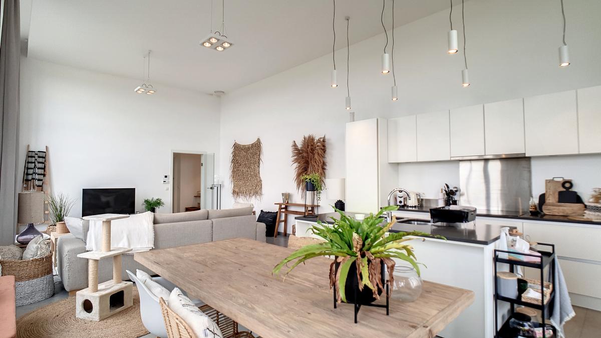 Situé à Marcq, au sein du site exceptionnel de « La Distillerie », ce superbe loft vous séduira par sa luminosité, ses surfaces, et ses équipements. Localisé au tout dernier étage de la haute tour surplombant le site, vous ne pourrez qu’être séduits par la superbe vue qu’offre cet appartement de standing ! D’une superficie de +/-117m², ce bien offre un grand hall sous forme de couloir, un séjour de +/-50.2m² avec cuisine ouverte, un WC séparé, une salle de bains, et 3 chambres dont 2 dotées de leur propre salle de douche. Orientation sud et ouest. Terrasse. Parking extérieur privatif. PEB : B. Chauffage par le sol. Double vitrage haut rendement. Système de ventilation double flux. Placards encastrés. Loyer : 1 200€/mois + 140€/mois de forfait pour [éclairage des parties communes (éclairage extérieur, éclairage de la cage d'escalier, etc.), eau des citernes d'eau de pluie, poubelles molok, nettoyage des parties communes, entretien des abords, entretien de la chaudière, frais d'ascenseur] + 100€/mois de provision pour la consommation privée en chauffage. Possibilité de louer en sus un garage fermé privatif pour 50€/mois. Gare de Silly à +/-3.1km (train direct vers Bruxelles en +/-30min), autoroute A8/E429 à +/-2.6km (Bruxelles, Tournai, Lille), arrêt de bus à quelques mètres, et nombreuses commodités à proximité.